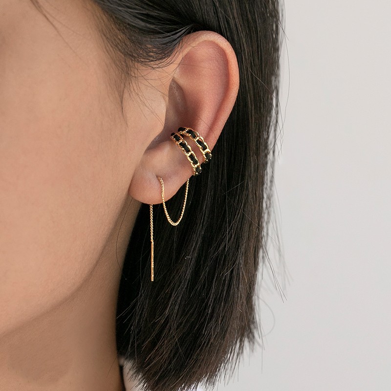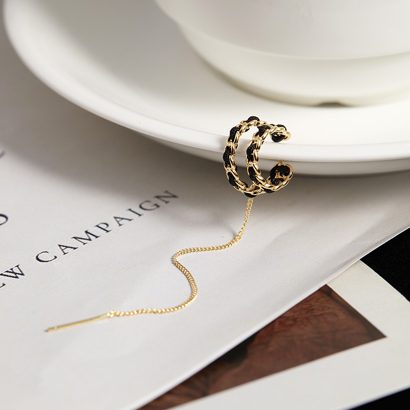 Oflye潮流饰品 个性耳夹小众独特耳环新款潮欧美耳骨夹耳钉一体式流苏耳饰