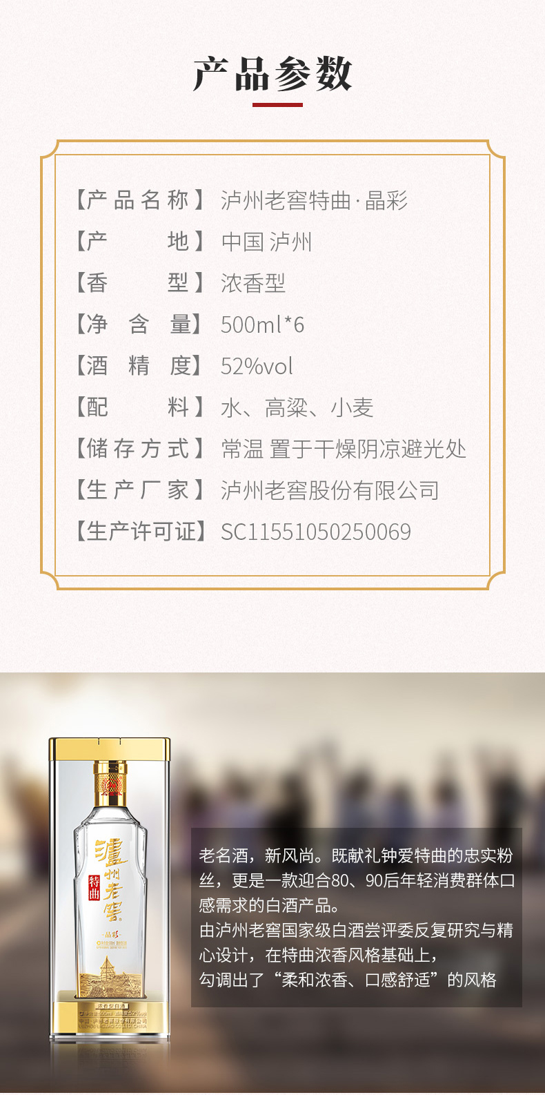 【酒厂直营】泸州老窖浓香型白酒 52度 500ml*6 特曲酒晶彩 泸州老窖官方旗舰店