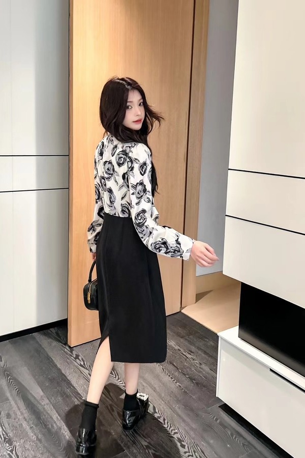 ELLA JADE 艺术玫瑰印花高腰拼接连衣裙 19717