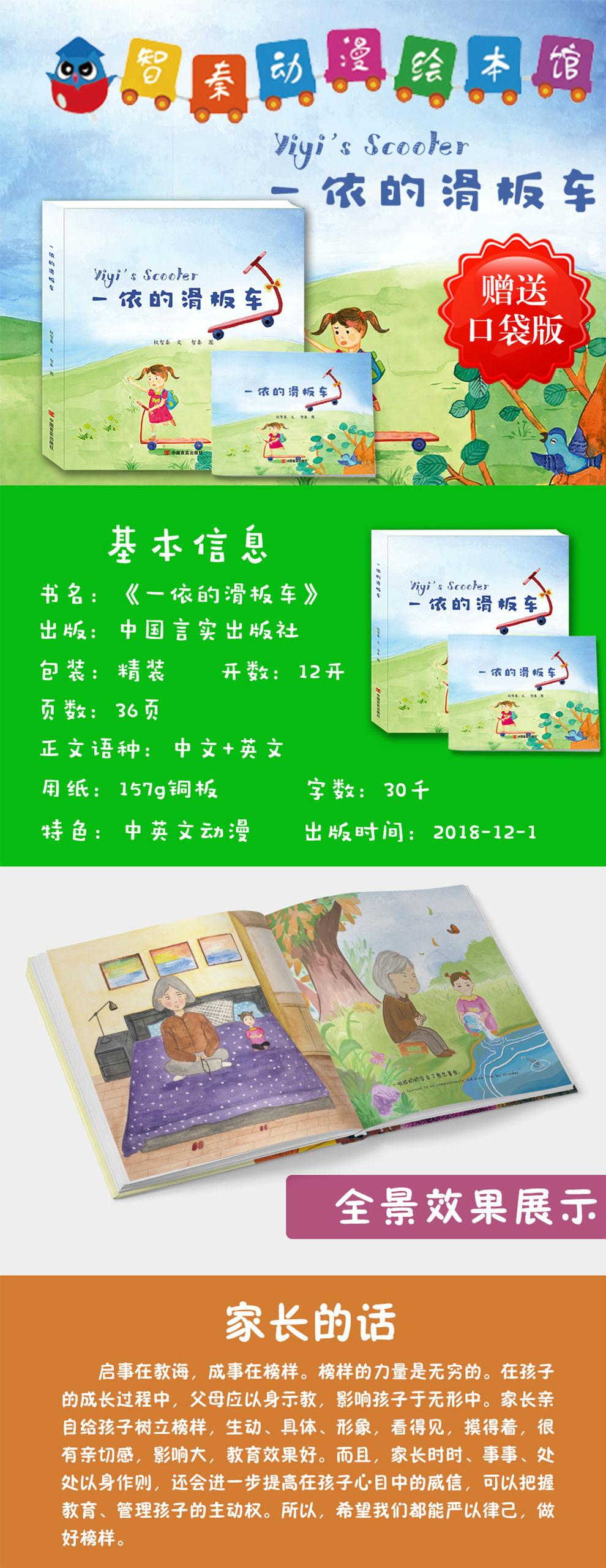 一依的滑板车(动漫+AR+3D+中英文,语言生动、表现力强,绘画风格和动画效果符合小朋友的审美爱好)