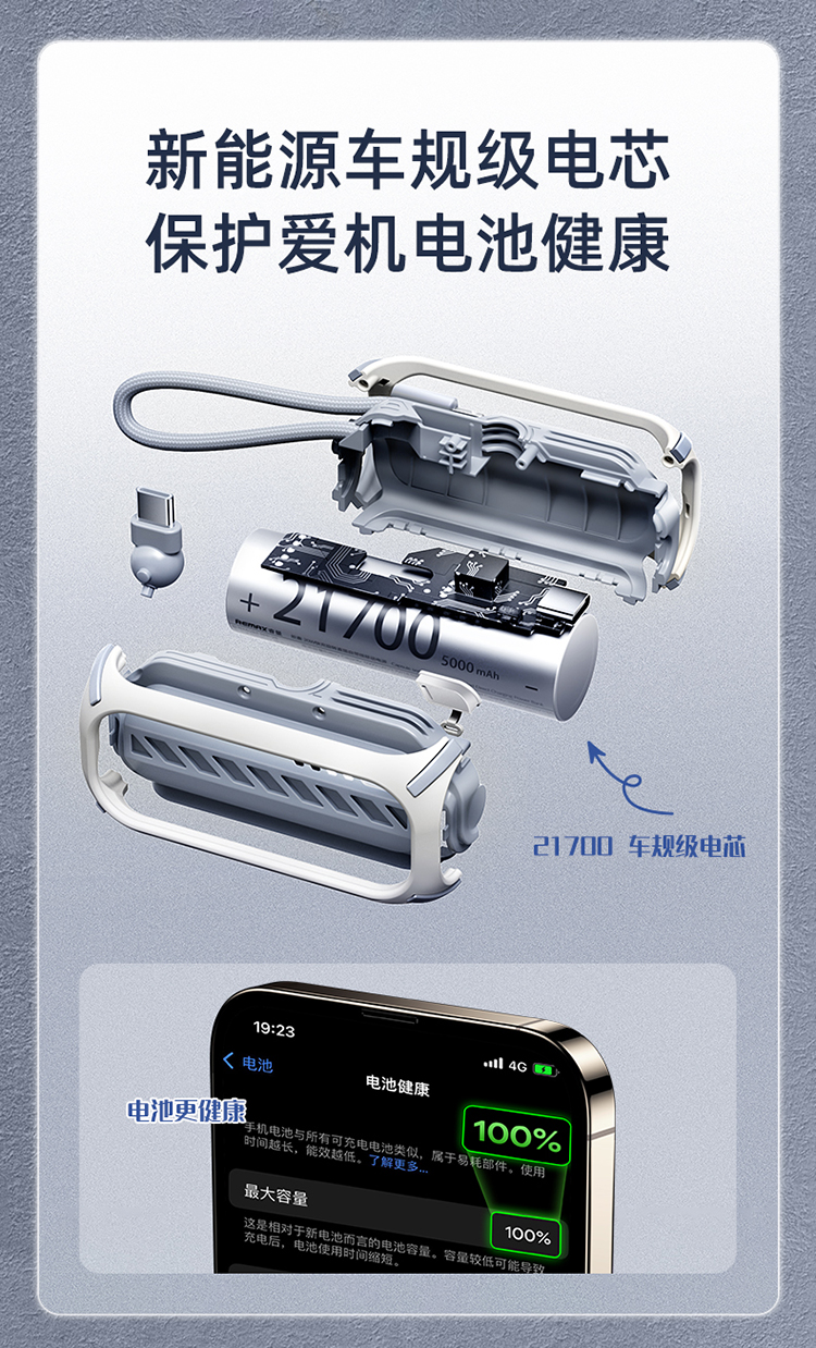 REMAX快充直插自带线口袋胶囊移动电源 RPP-28 5000mAh充电宝