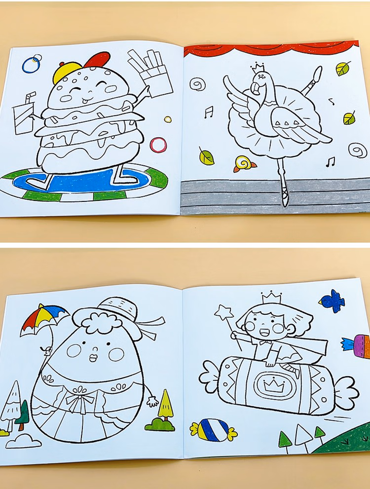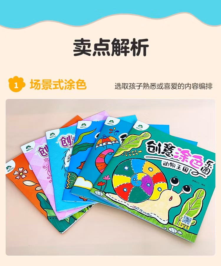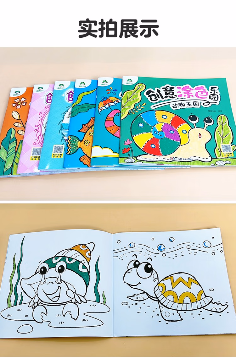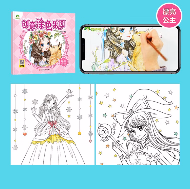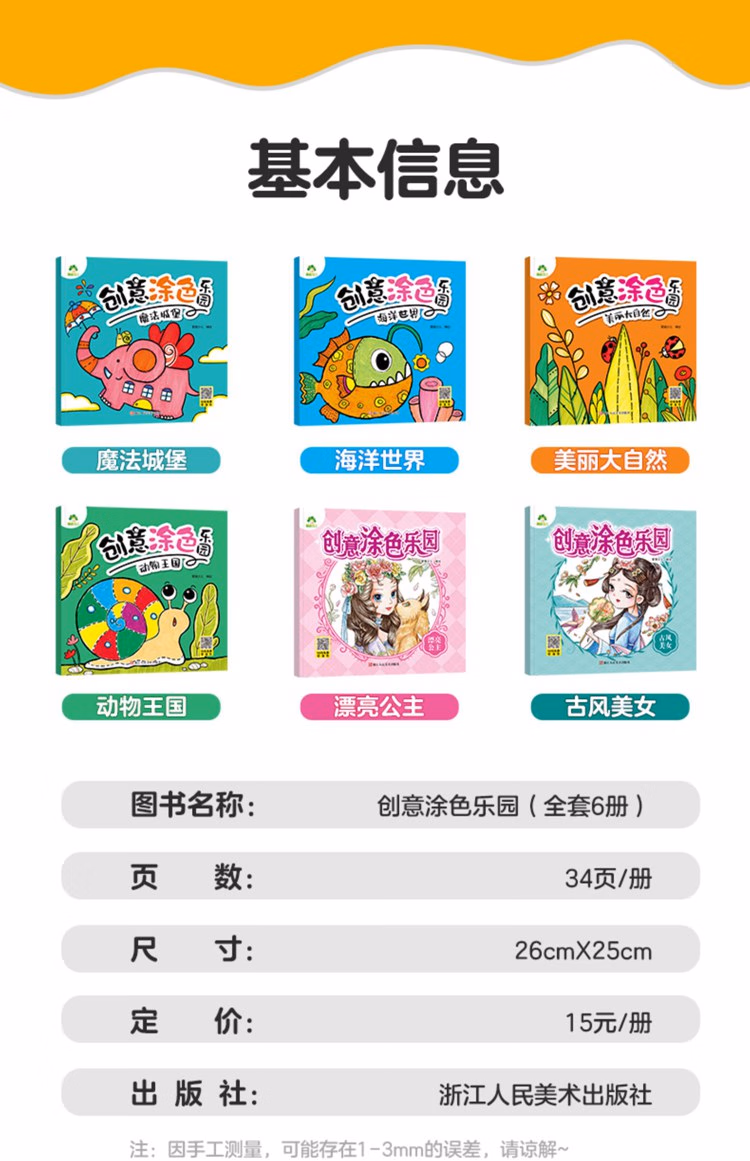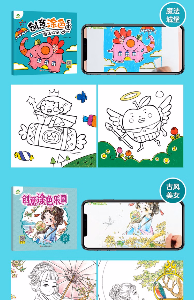 爱德少儿创意涂色乐园6册漂亮公主古风美女动物王国海洋世界儿童画画本阶梯涂色画2-3-5岁简笔画涂色宝宝学画画早教益智涂鸦填色本 [6册]创意涂色乐园