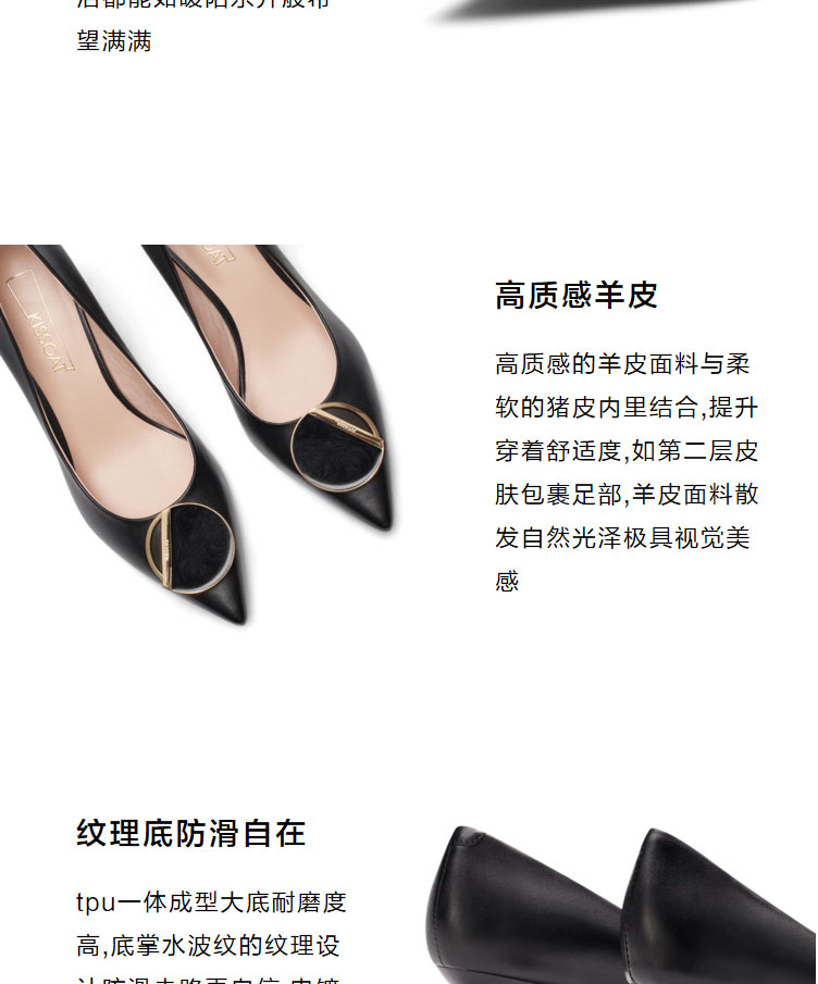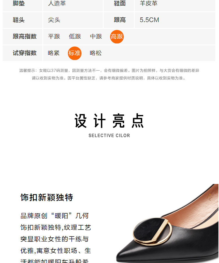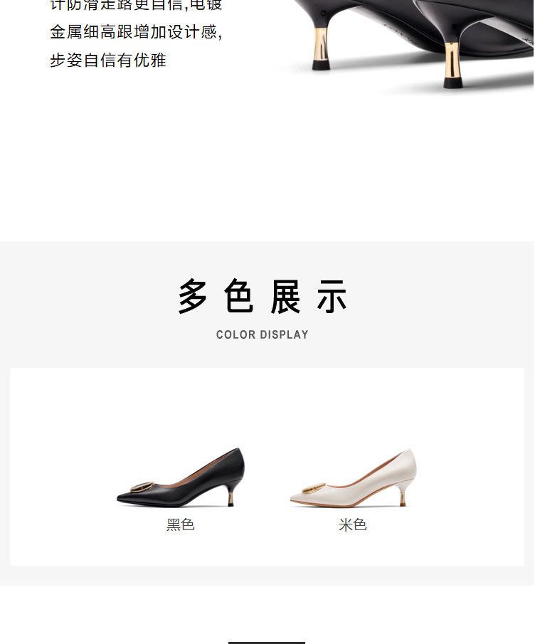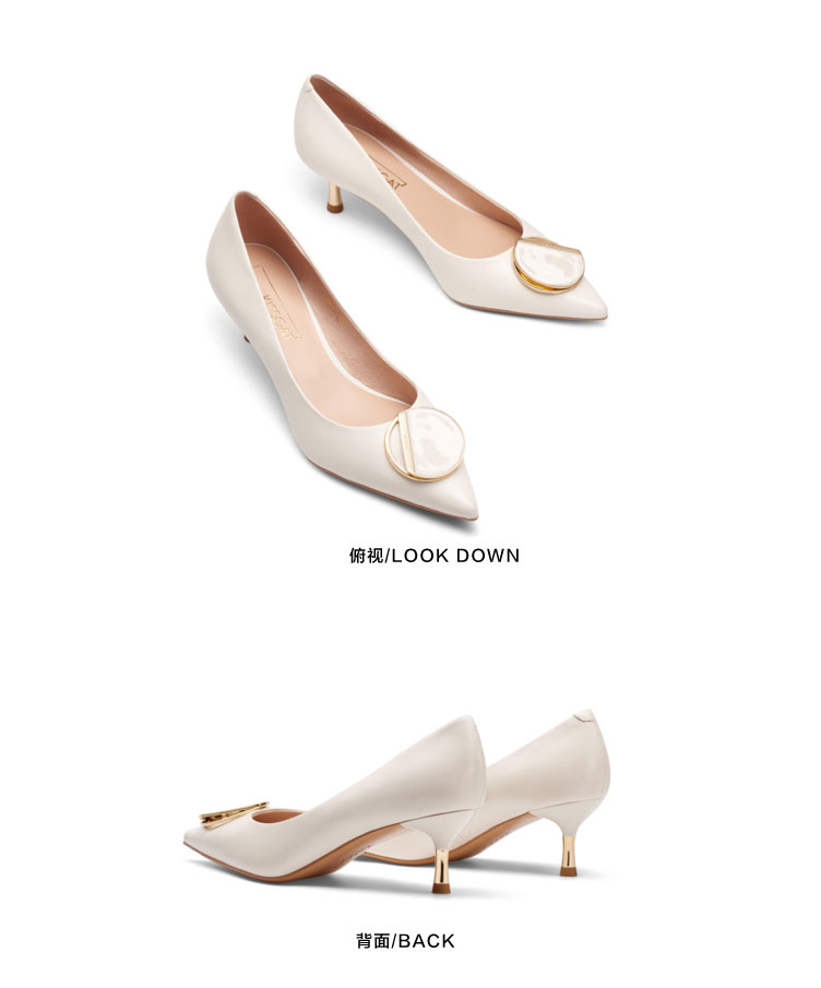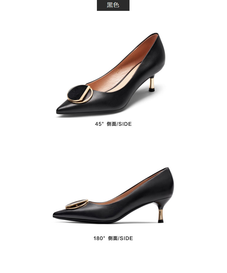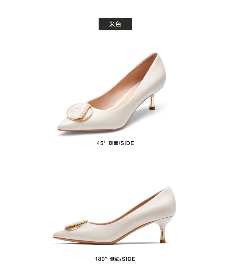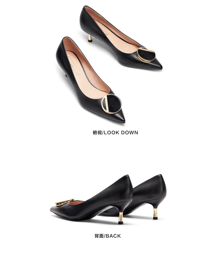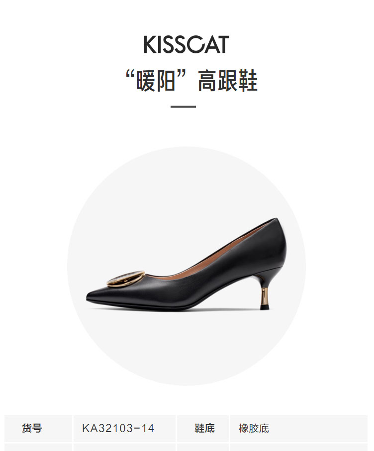 接吻猫高跟鞋女2022春夏季新款简约饰扣通勤羊皮细跟尖头浅口单鞋32103-14