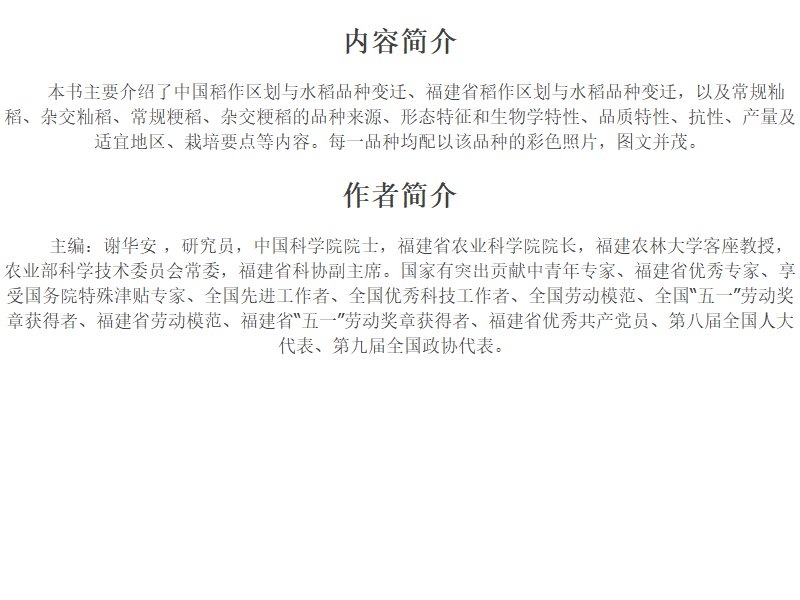 中国水稻品种志 福建台湾卷 万建民 总主编 谢华安 主编