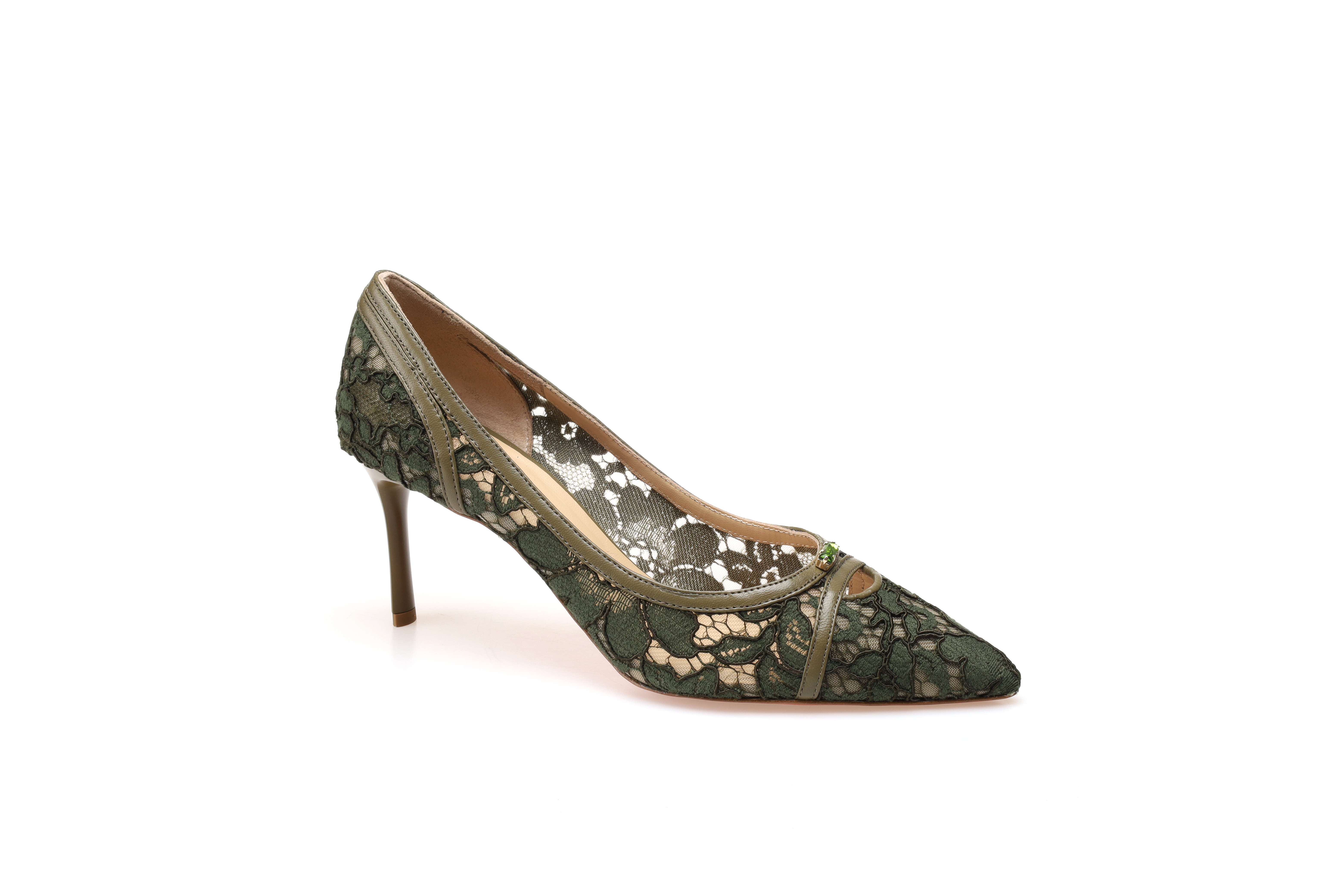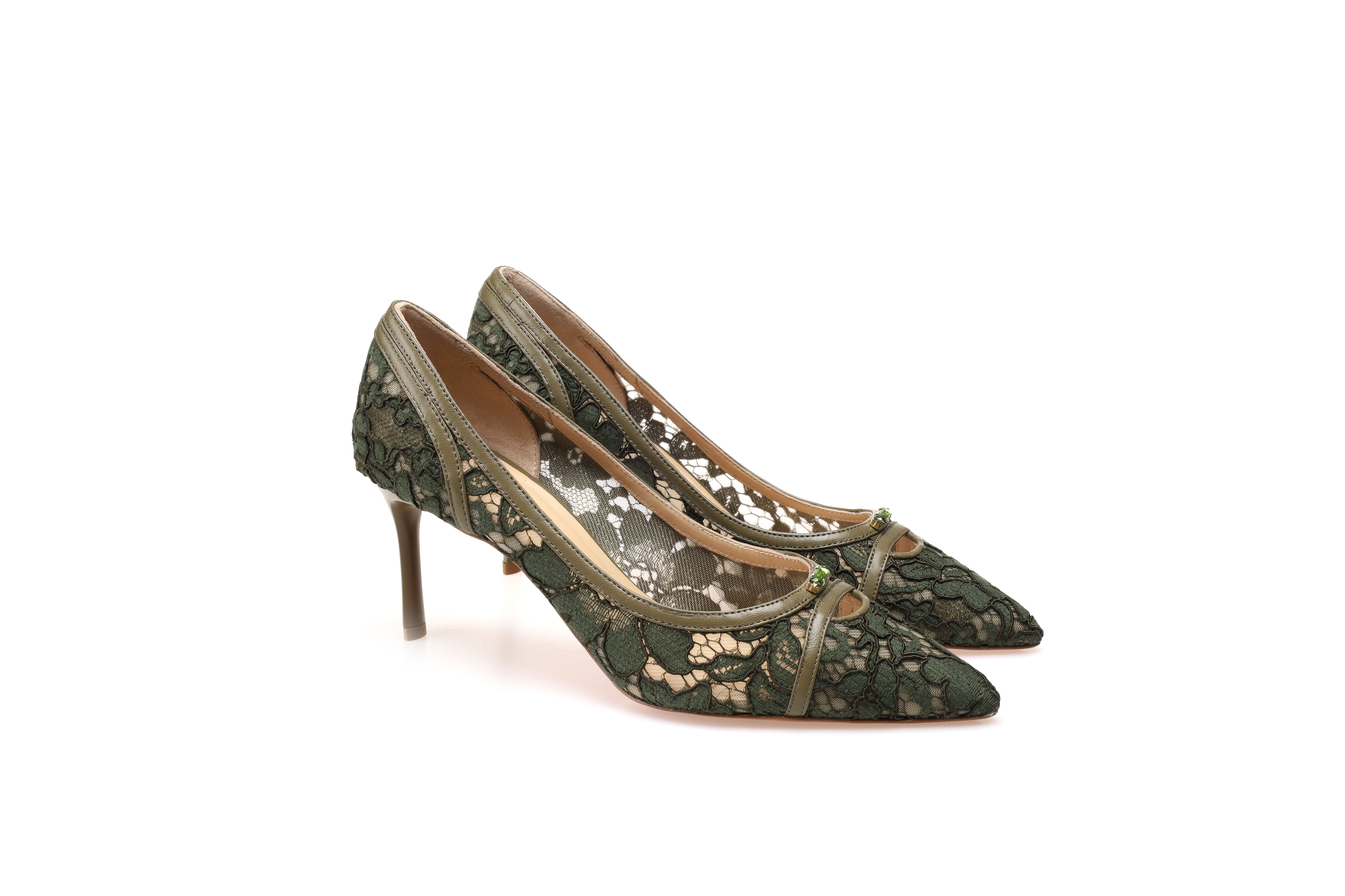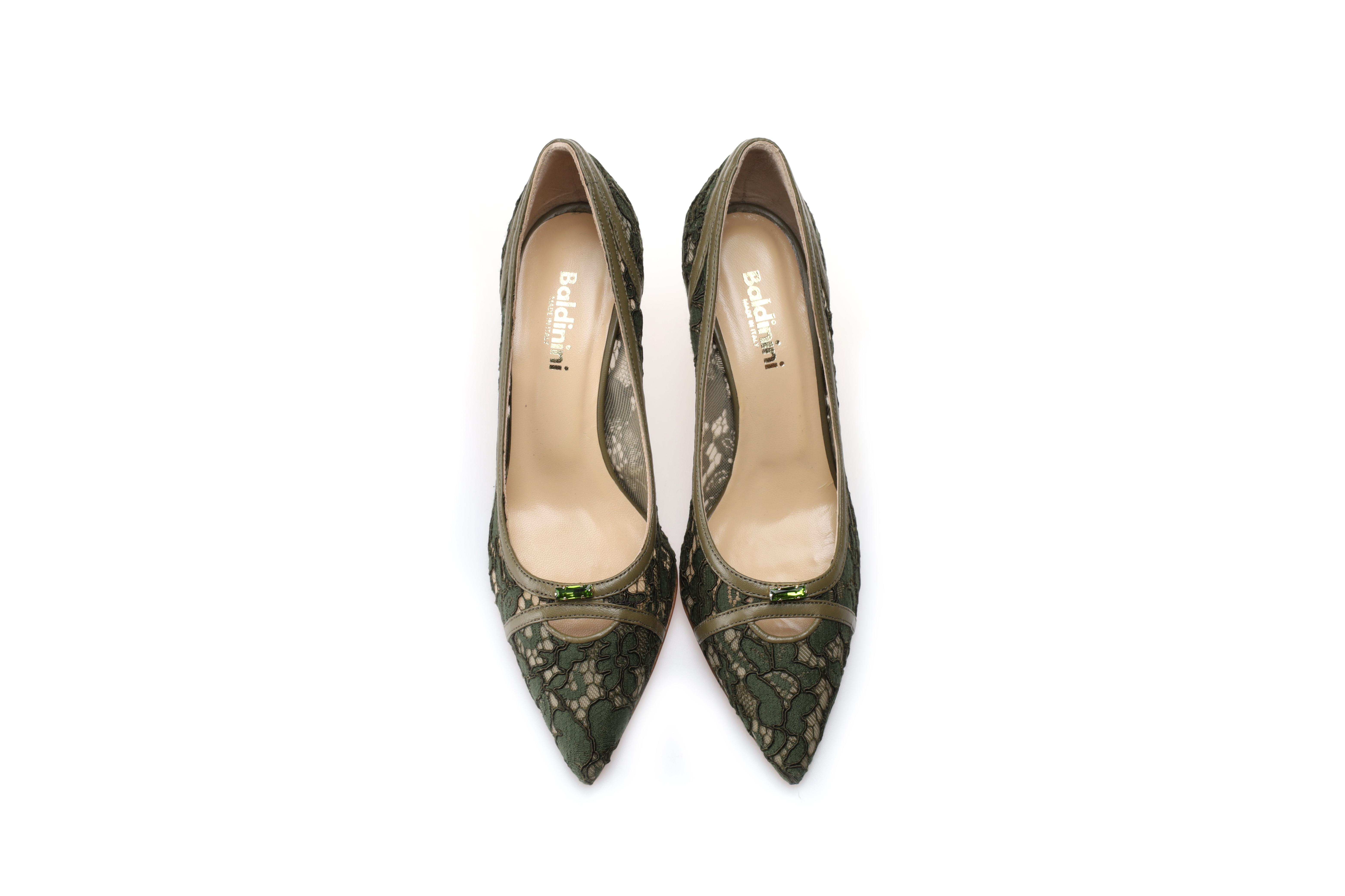 豪麟名鞋奥莱BALDININI女鞋皮鞋蕾丝网D2E145P绿色 原价6600元