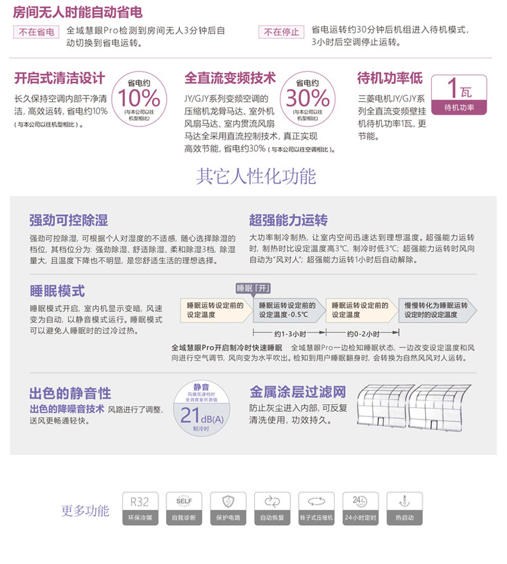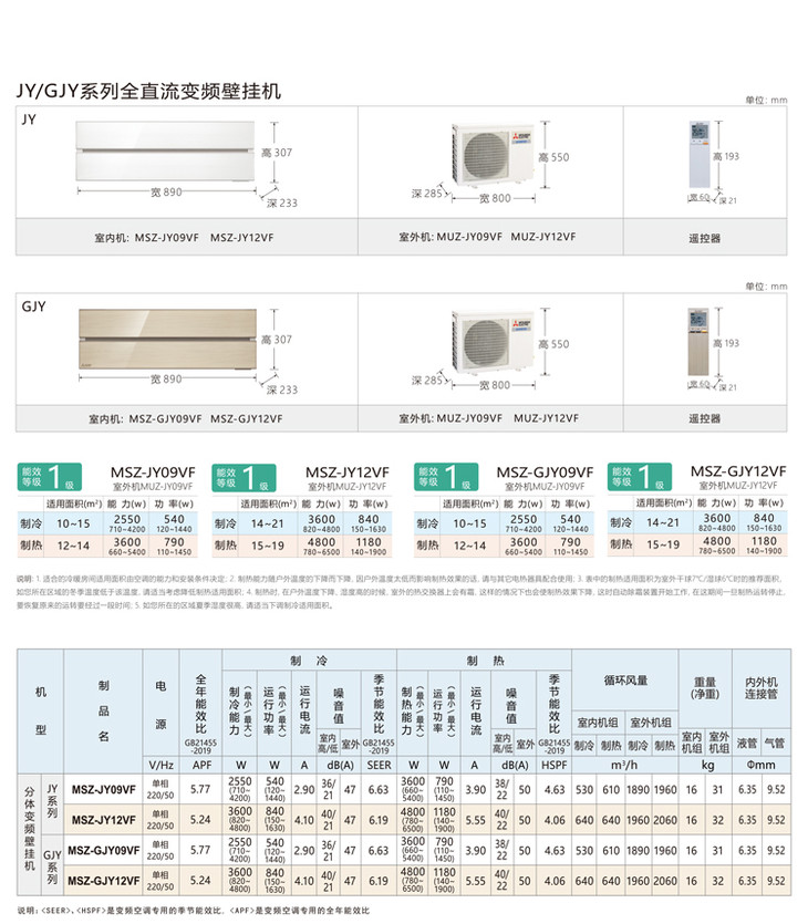 三菱电机新1级能效 1匹 变频制暖 空调挂机 独立送风双段式导风板 MSZ-GJY09VF