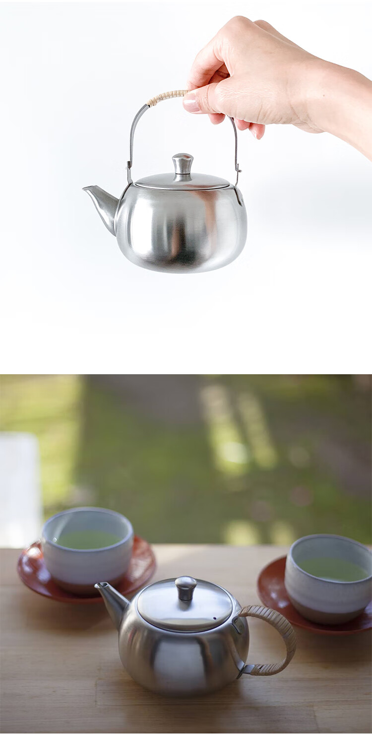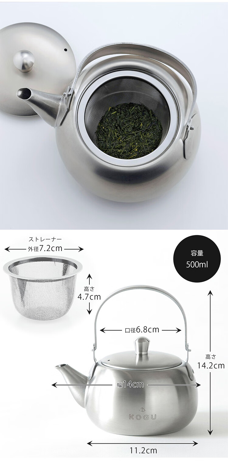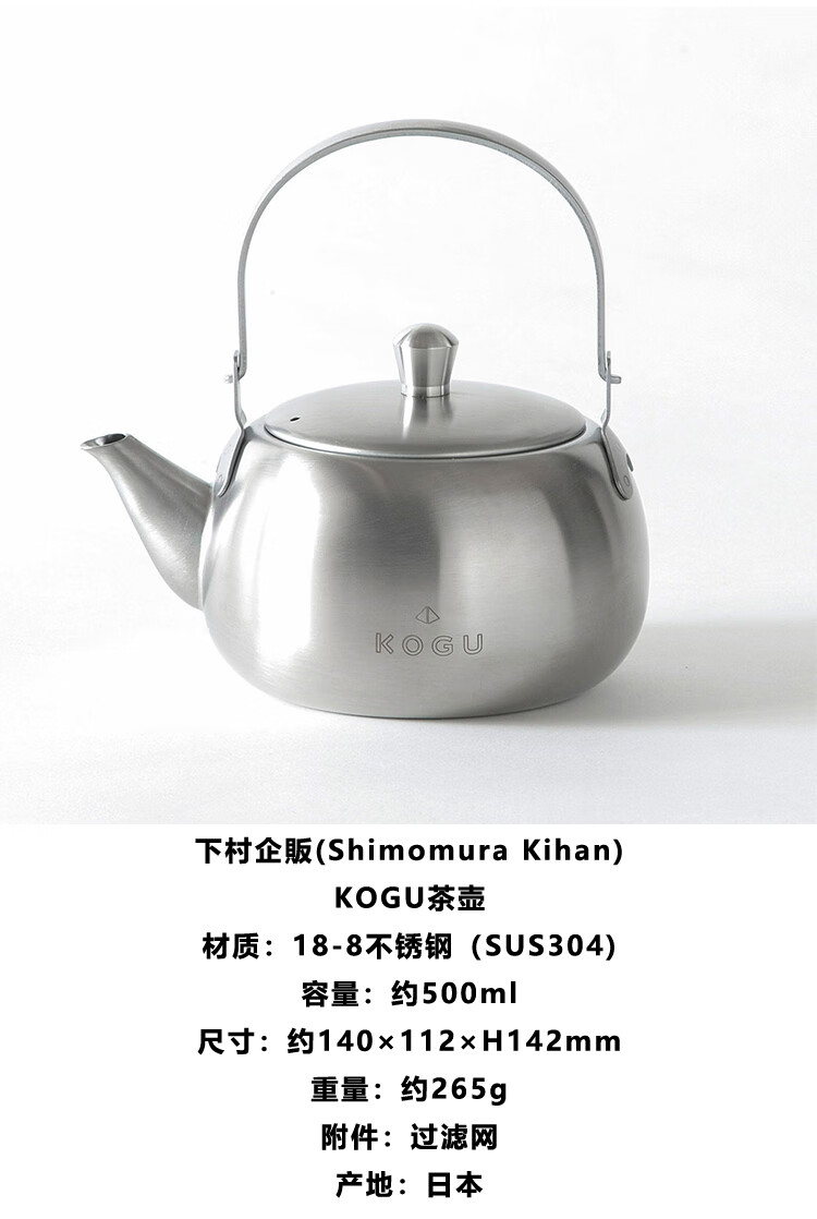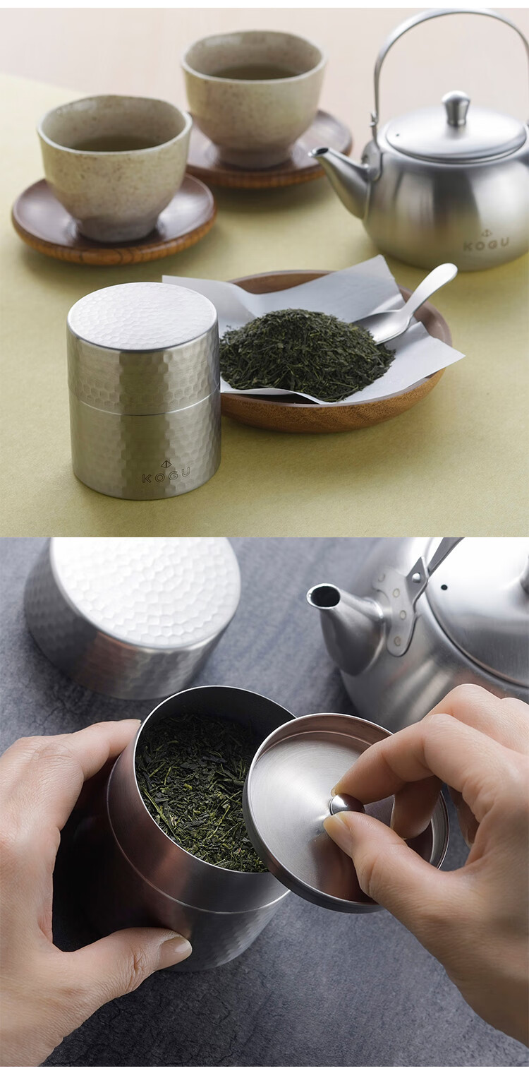日本吉川下村KOGU银色不锈钢茶壶 500ml 茶叶罐200g