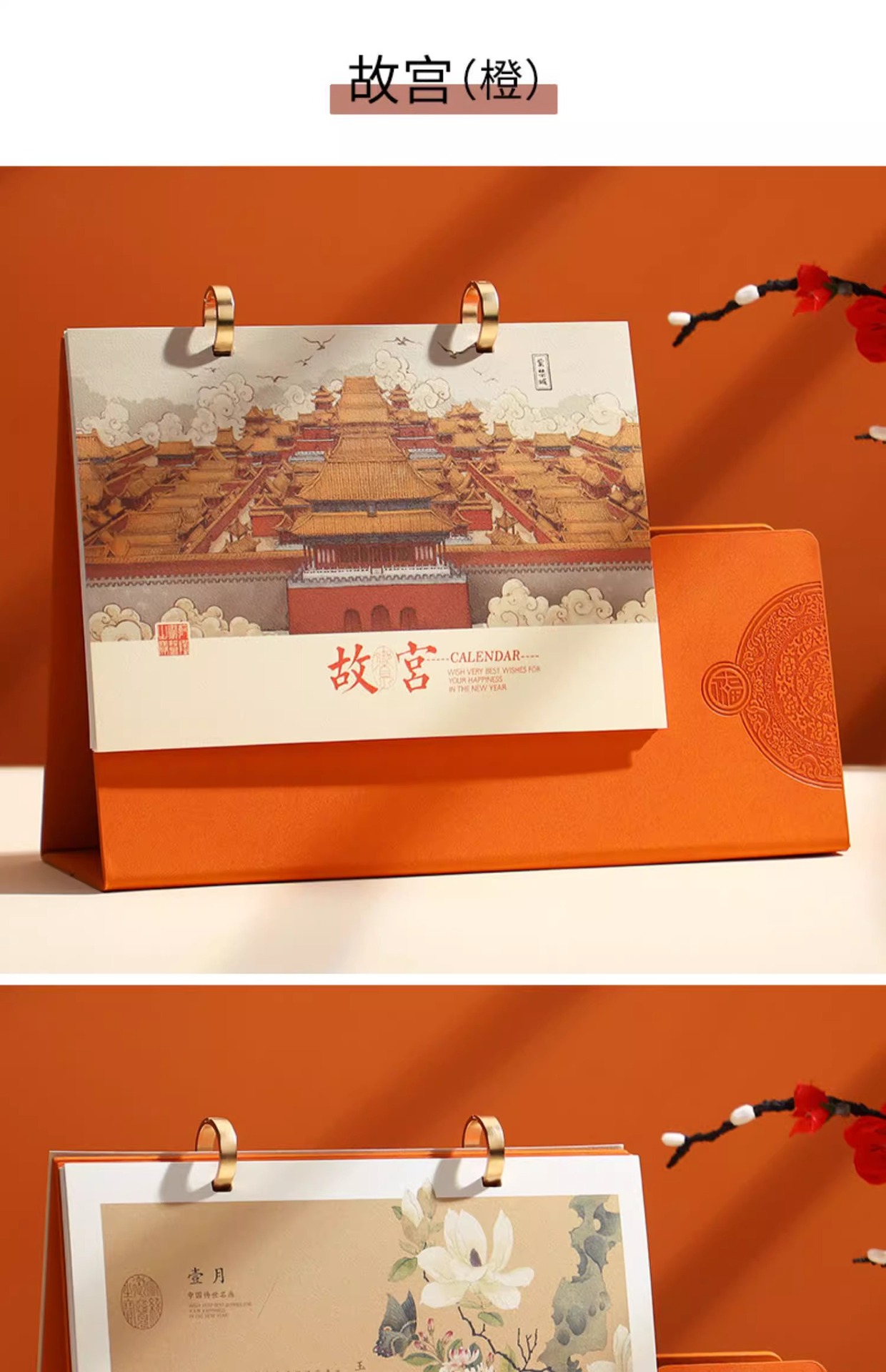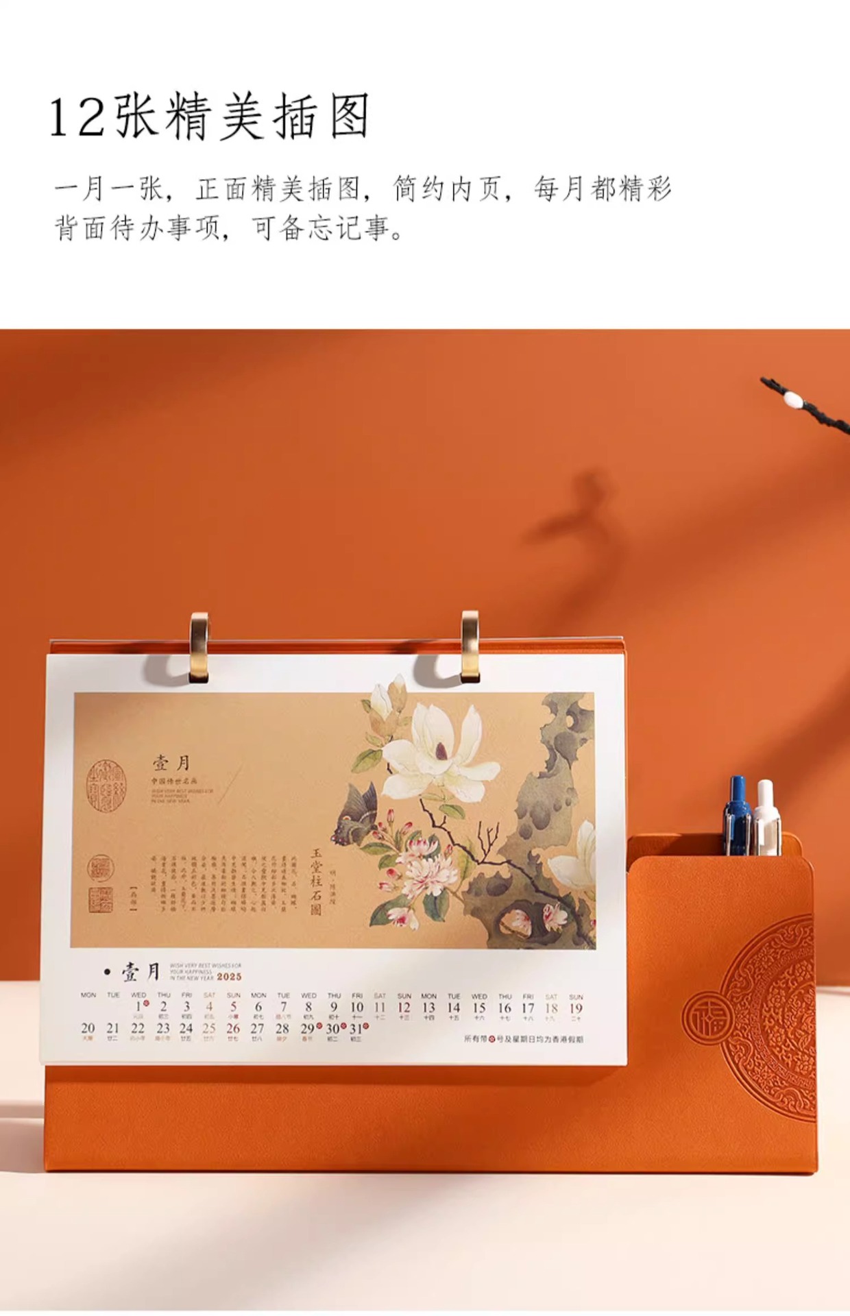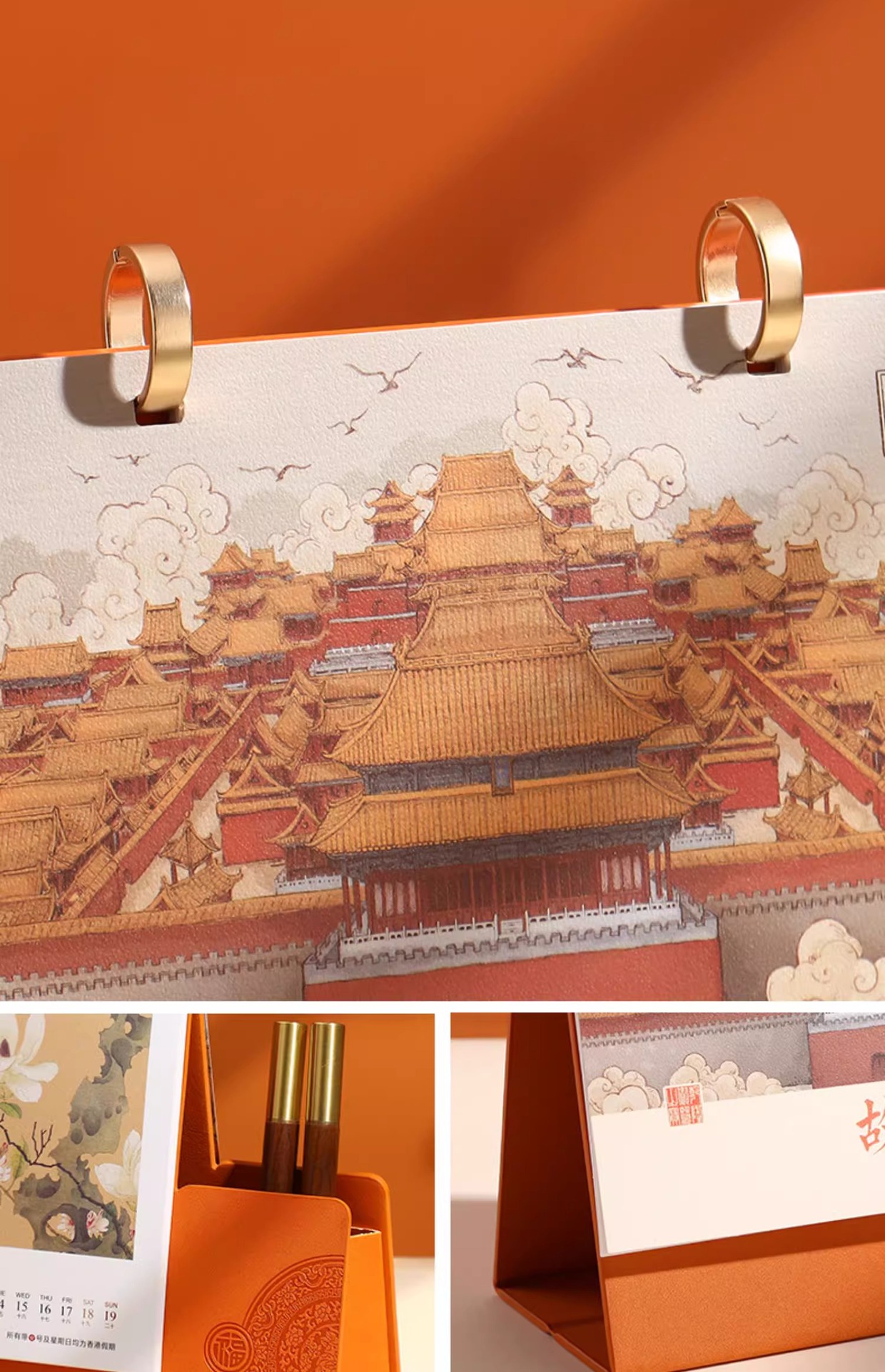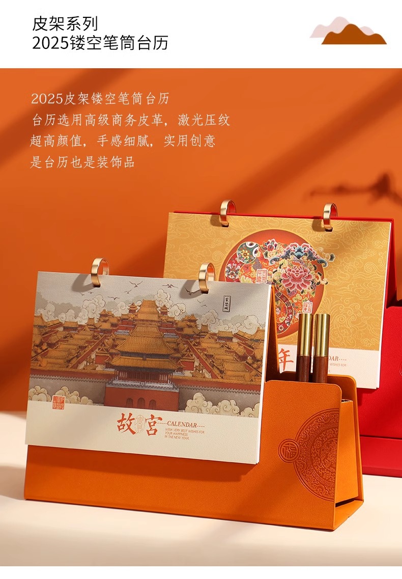 「精美礼盒装!数套可选」2025年皮质台历故宫台历创意双圈带笔筒居家日用日历桌面办公摆件礼品