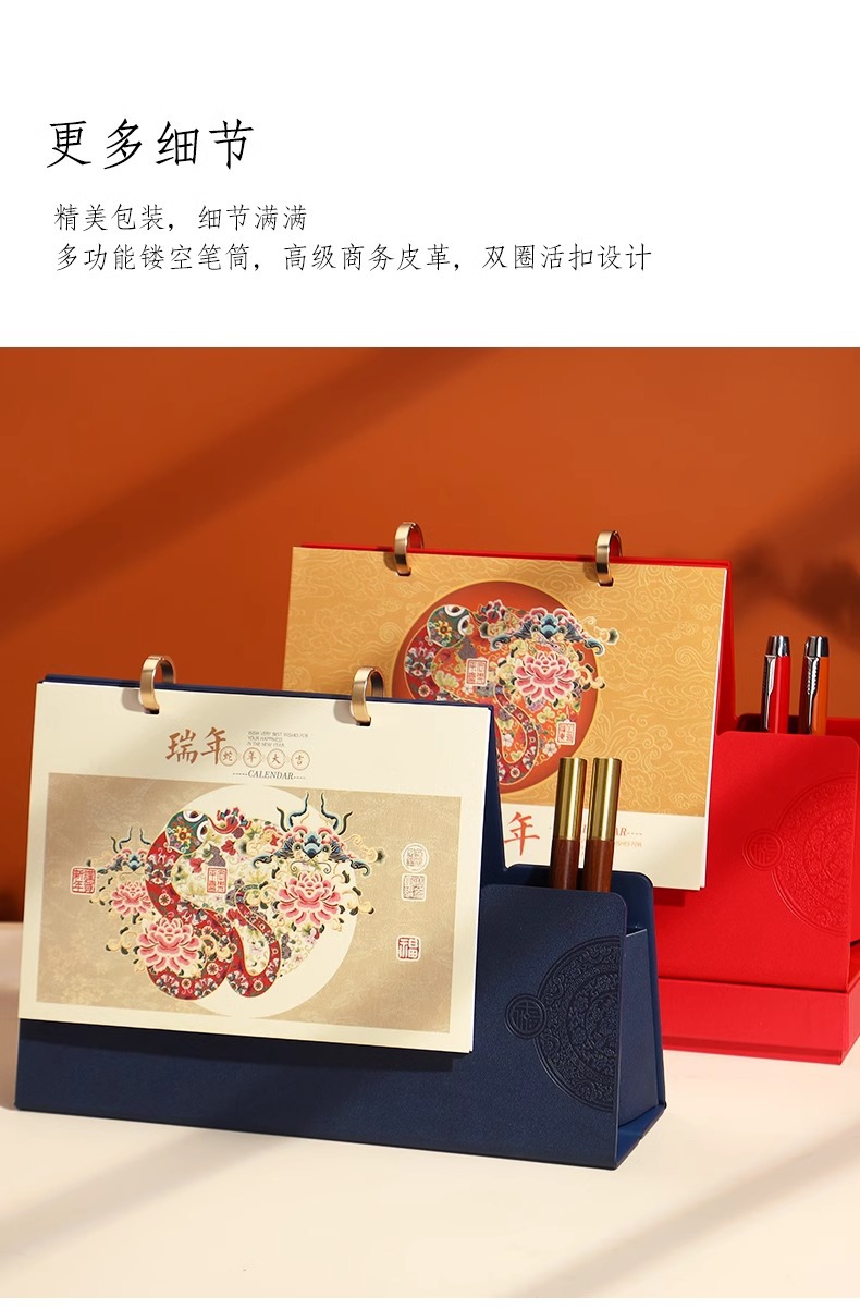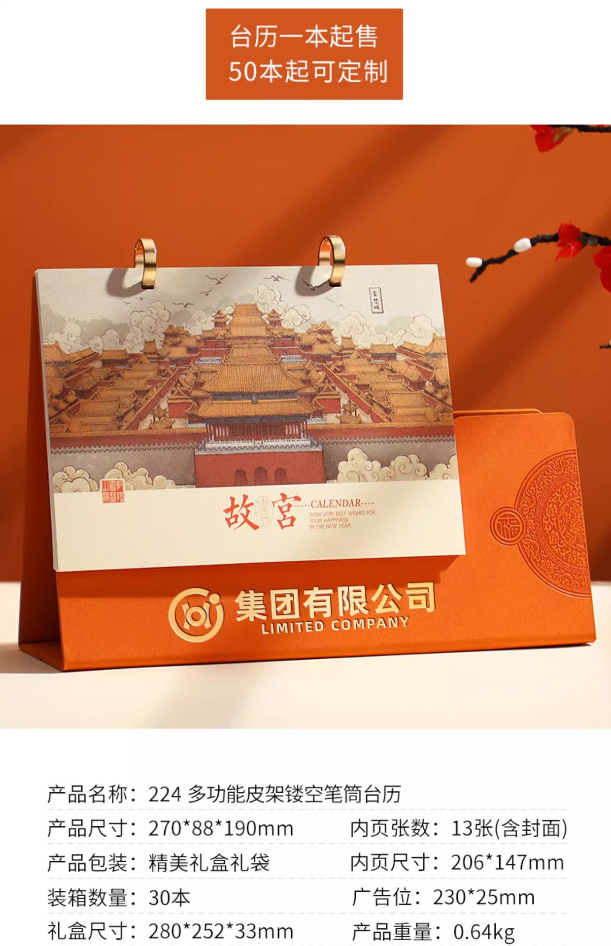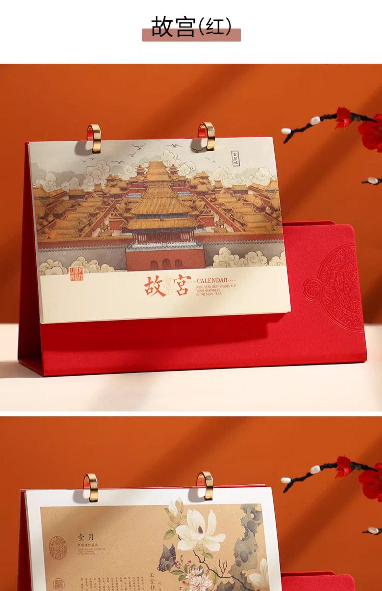 「精美礼盒装!数套可选」2025年皮质台历故宫台历创意双圈带笔筒居家日用日历桌面办公摆件礼品