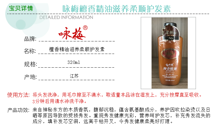 临期特价*26年12月*咏梅檀香精油滋养柔顺护发素320ml