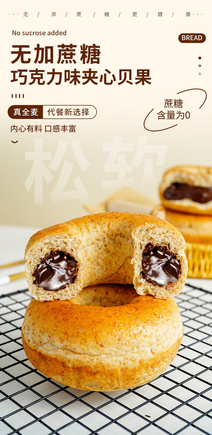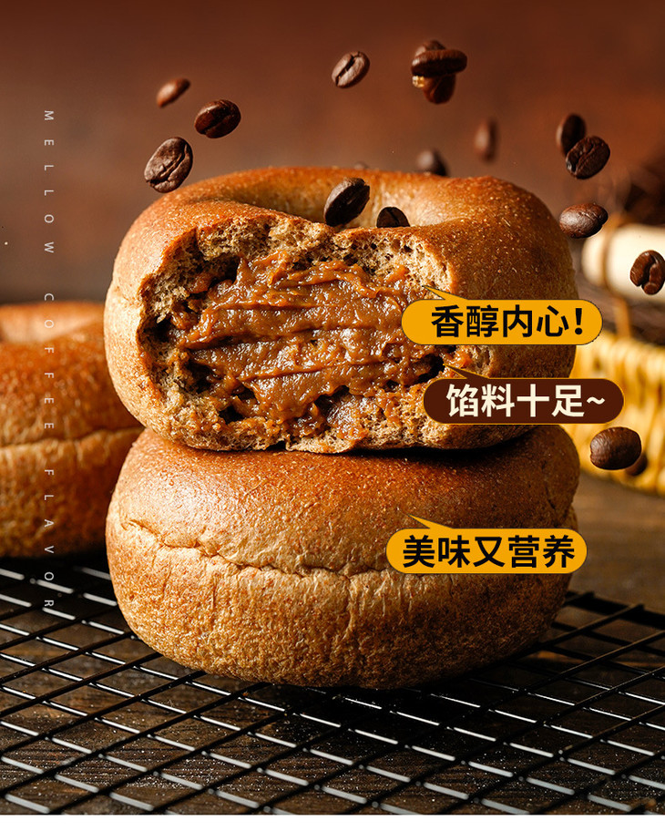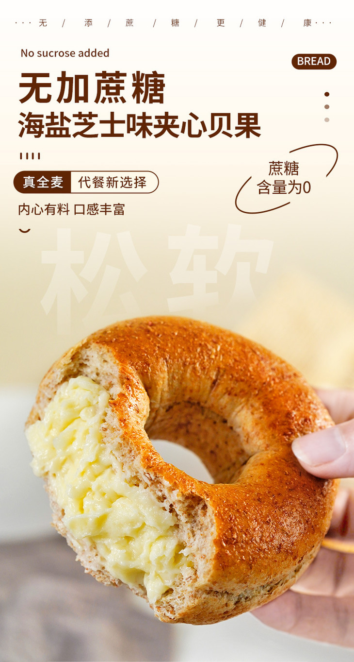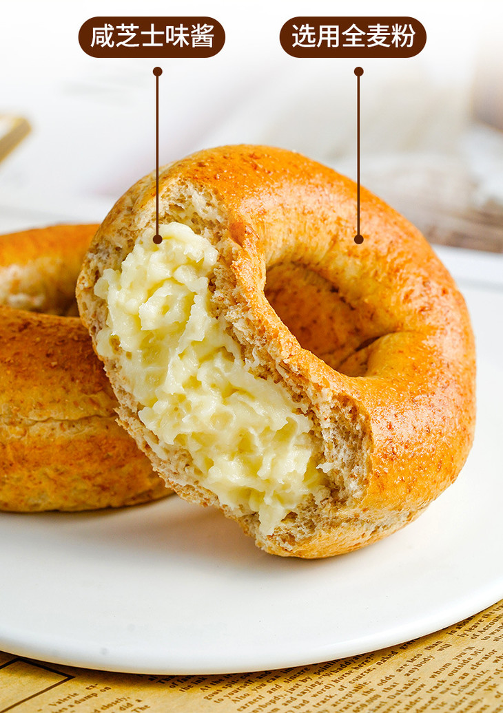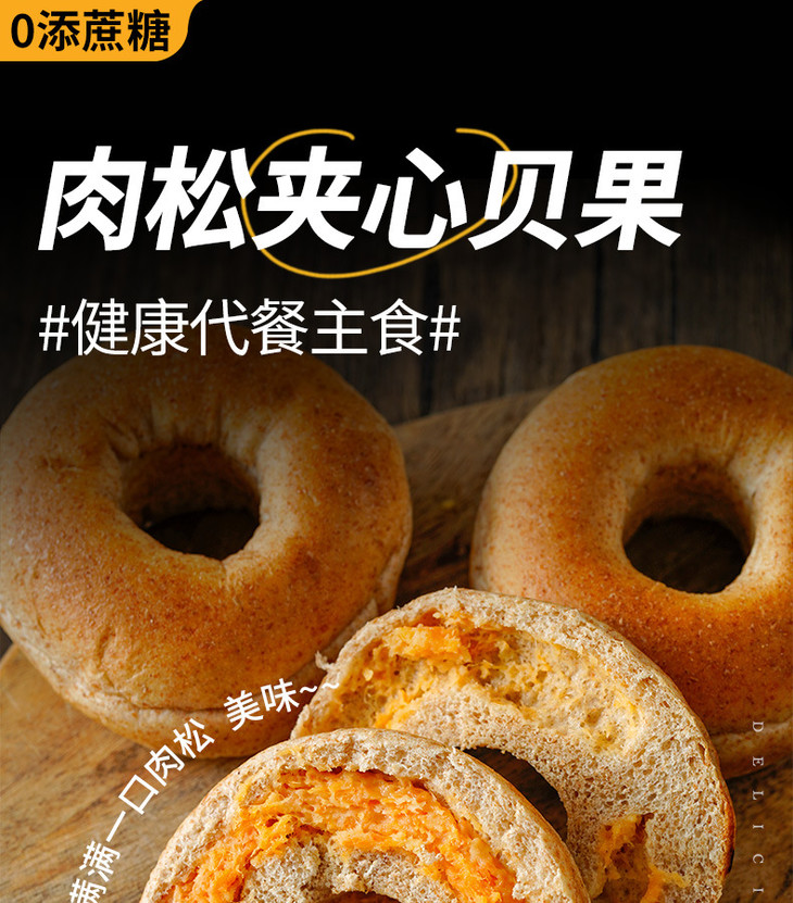 【超好吃!夹心贝果面包】美味代餐,营养又好吃!黑芝麻海盐肉松奶酪味约早餐追剧下午茶