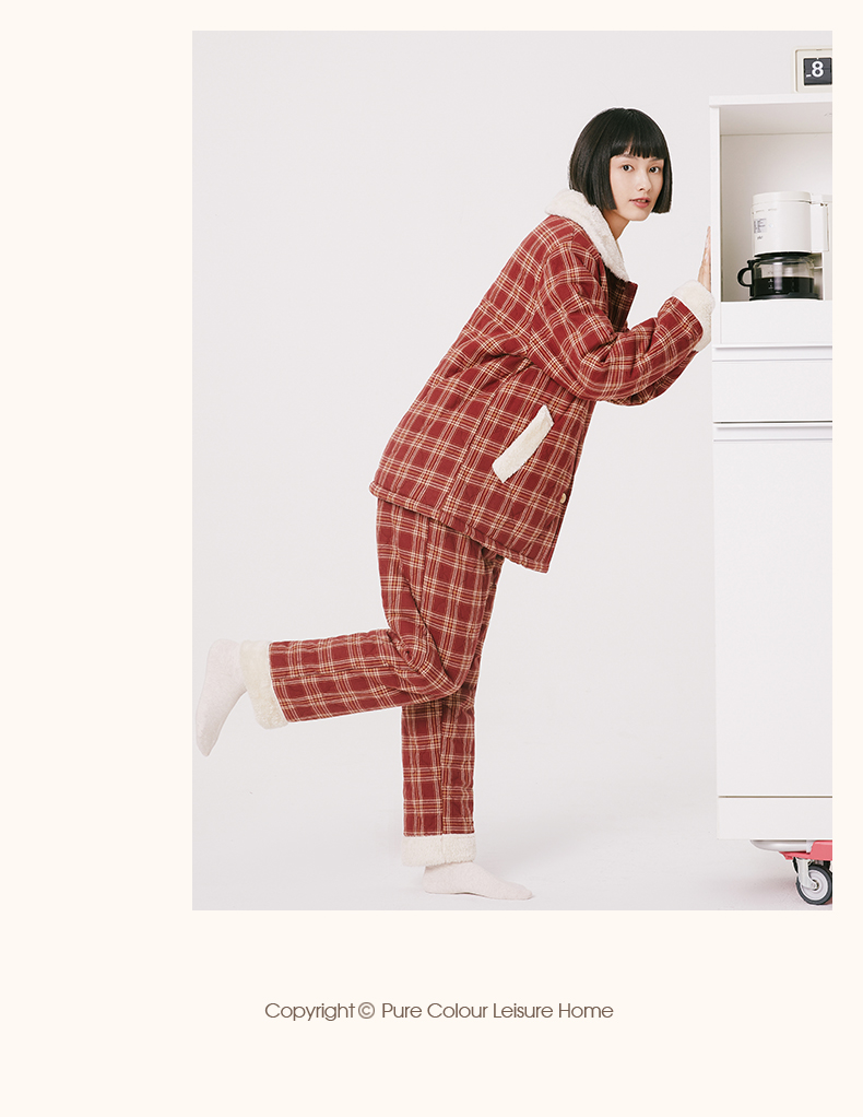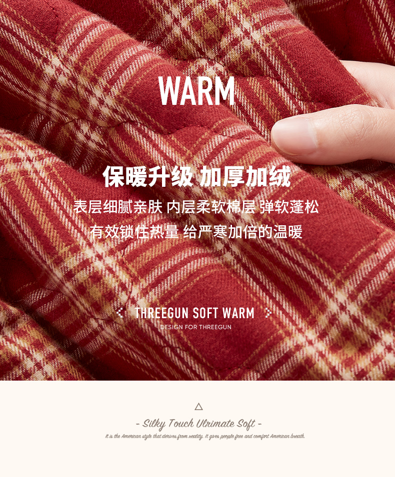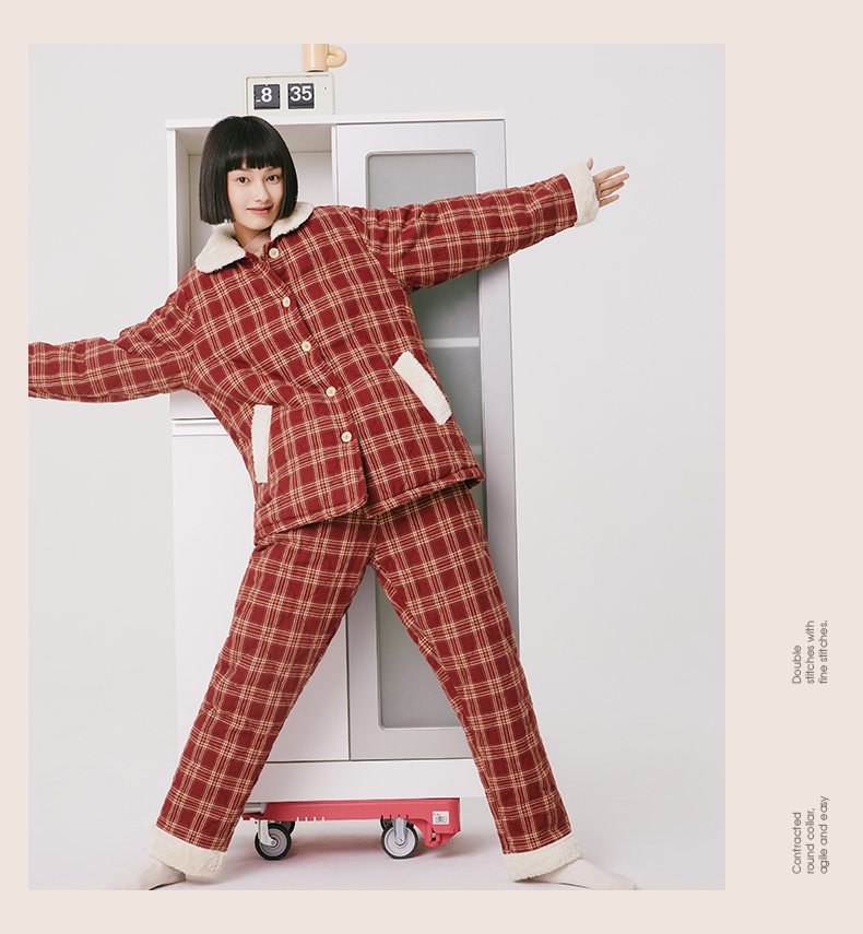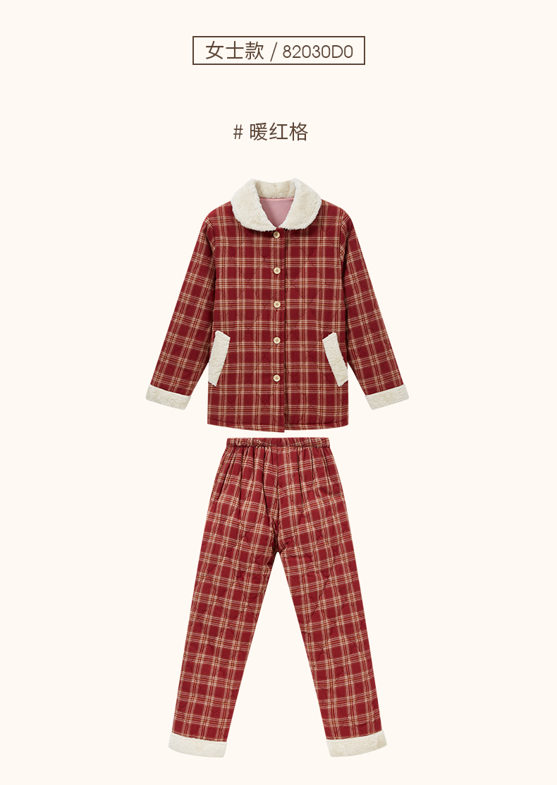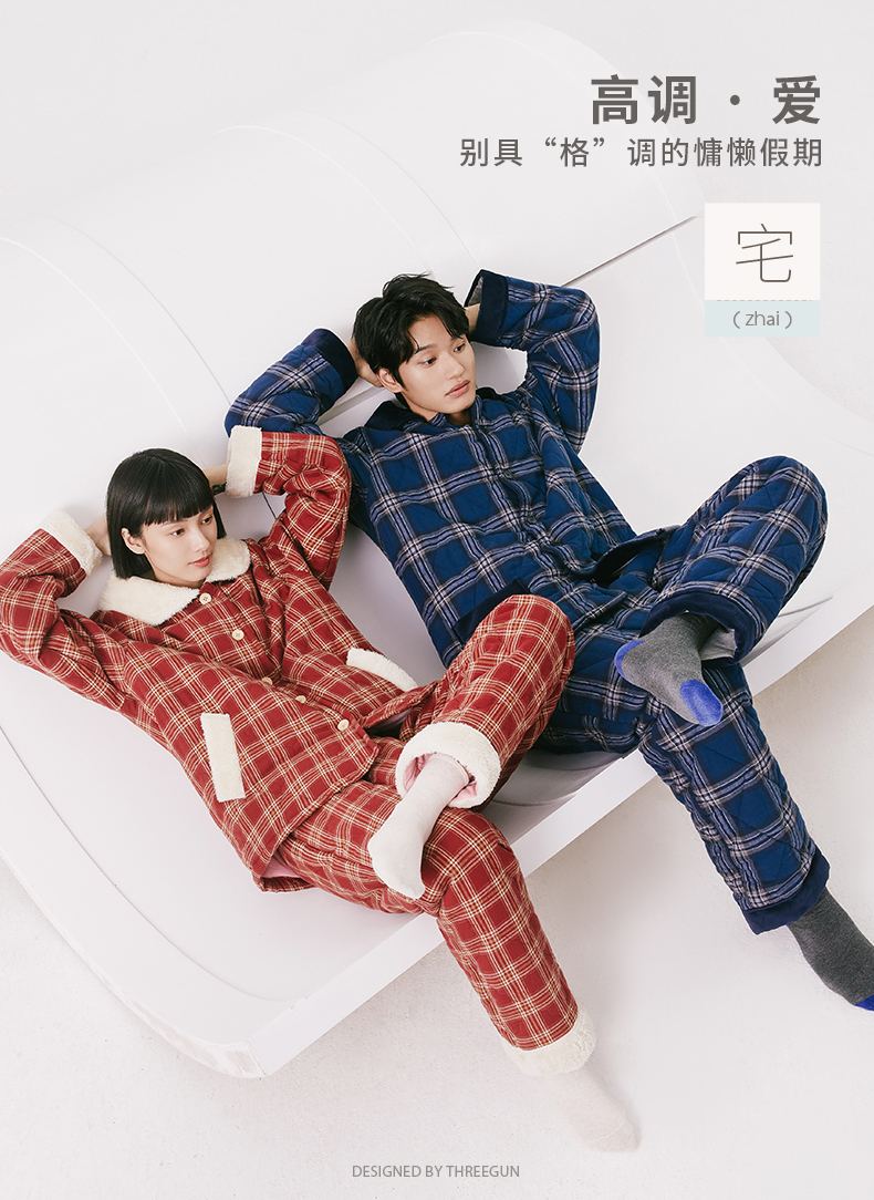 Threegun三枪 【绒布夹棉】翻领开襟长袖长裤女士家居套家居服-82030D011
