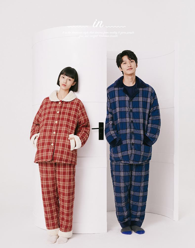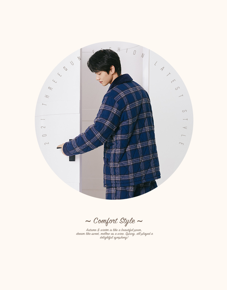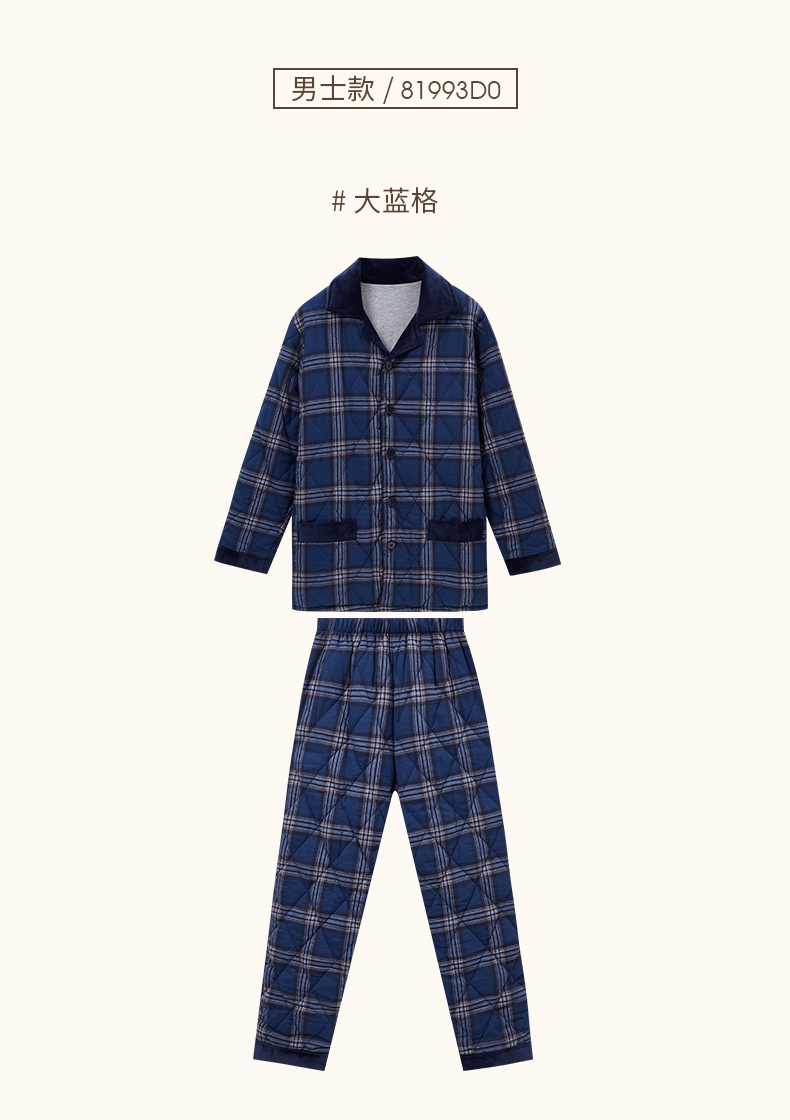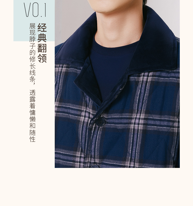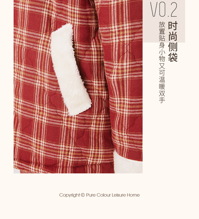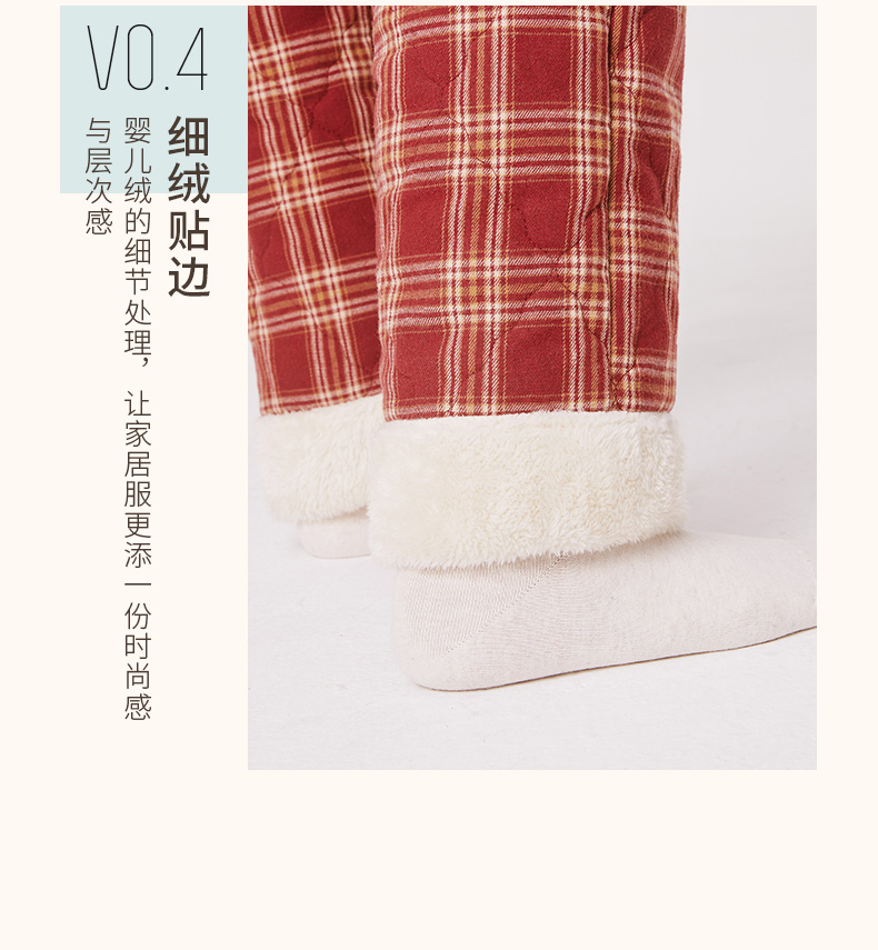 Threegun三枪 【绒布夹棉】翻领开襟长袖长裤女士家居套家居服-82030D011