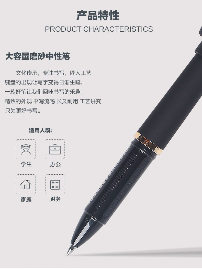 【练字笔】0.7mm 大容量黑红色签字笔中性笔学生子弹头碳素笔