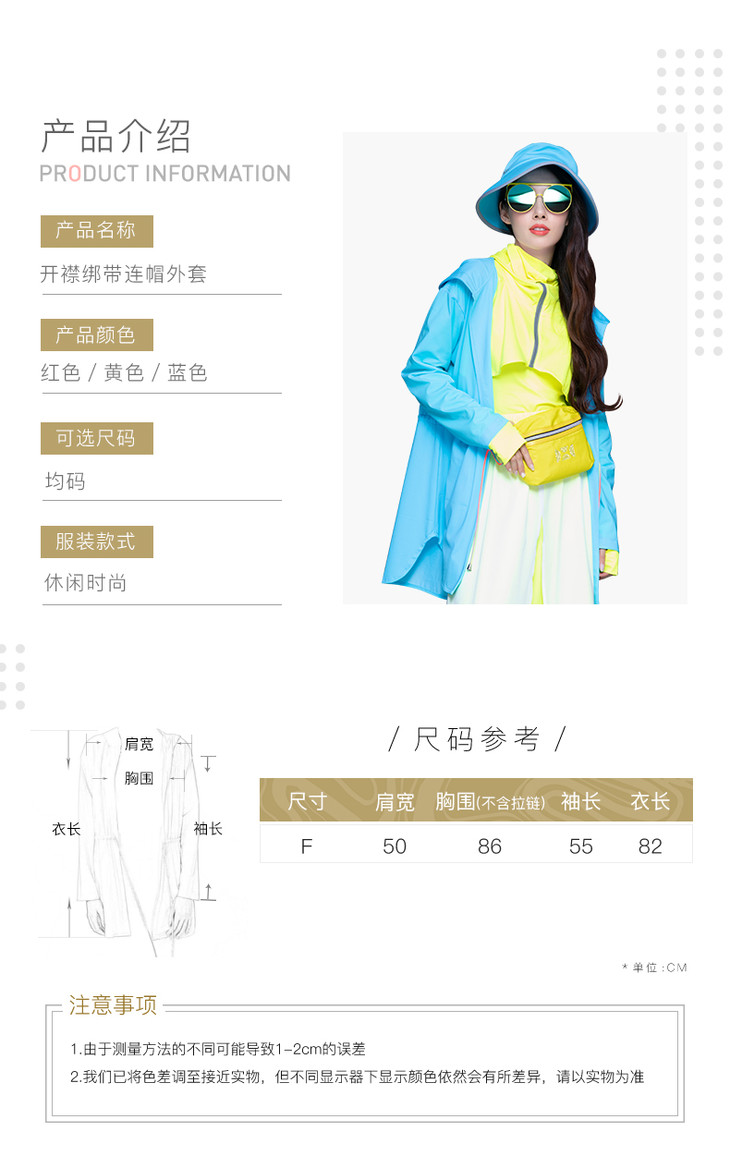HOII/后益 郭碧婷同款开襟绑带连帽防晒外套[福利品]
