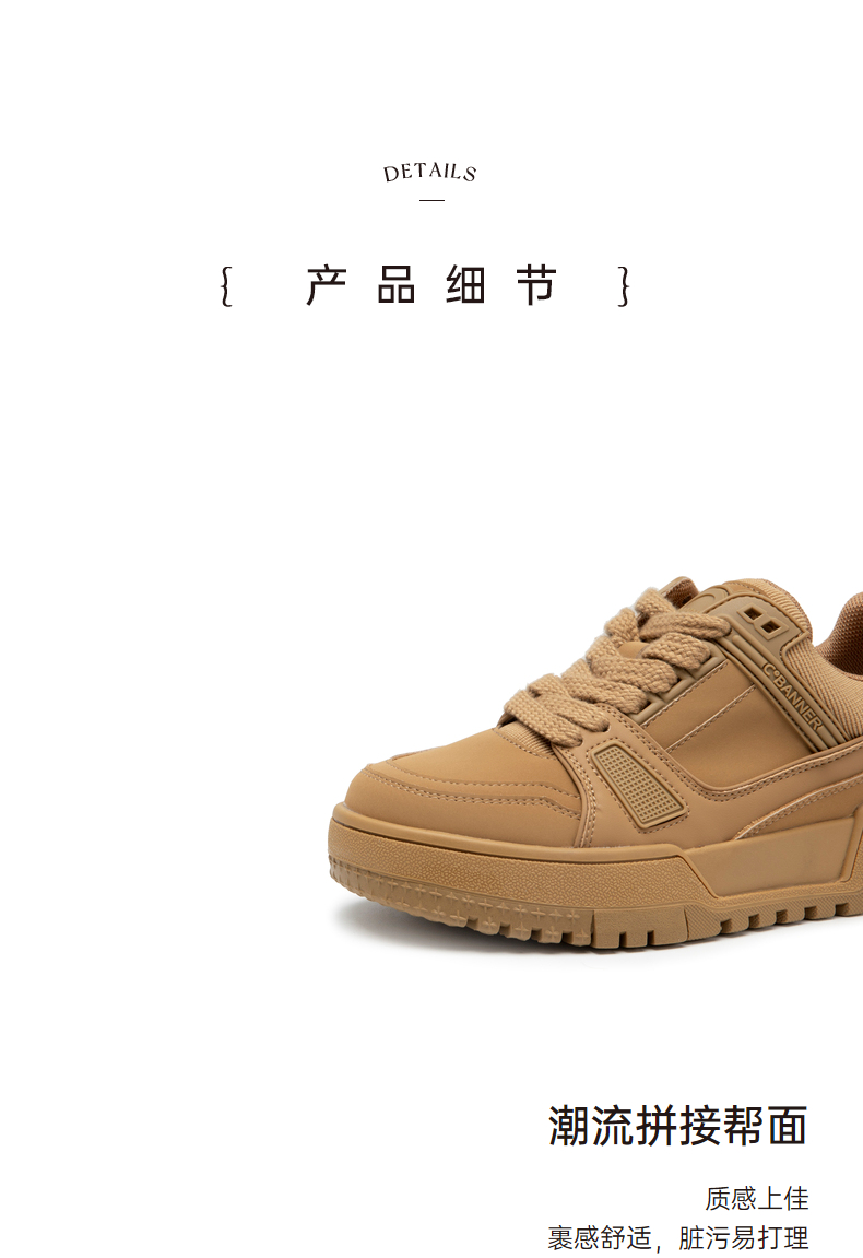 千百度女鞋春季休闲板鞋时尚潮流复古运动鞋厚底增高舒适 A23159055