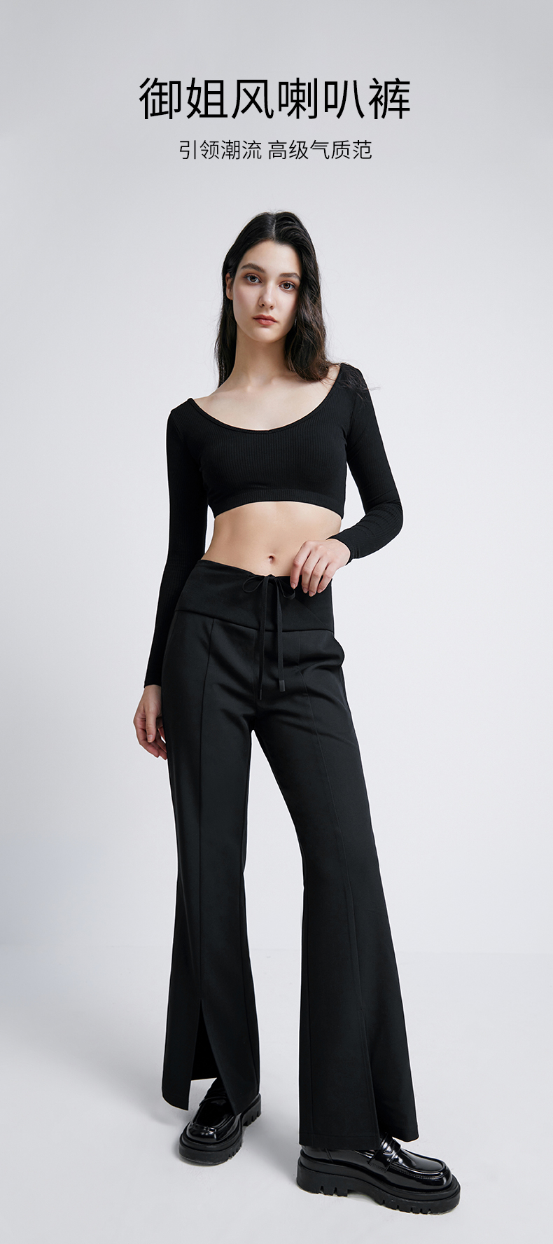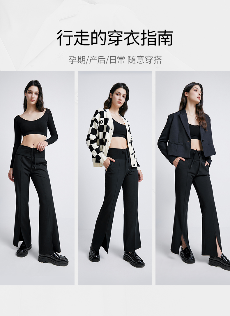 【孕妈服饰】嫚熙孕妇休闲裤外穿秋季喇叭裤开叉怀孕期托腹大码阔腿裤