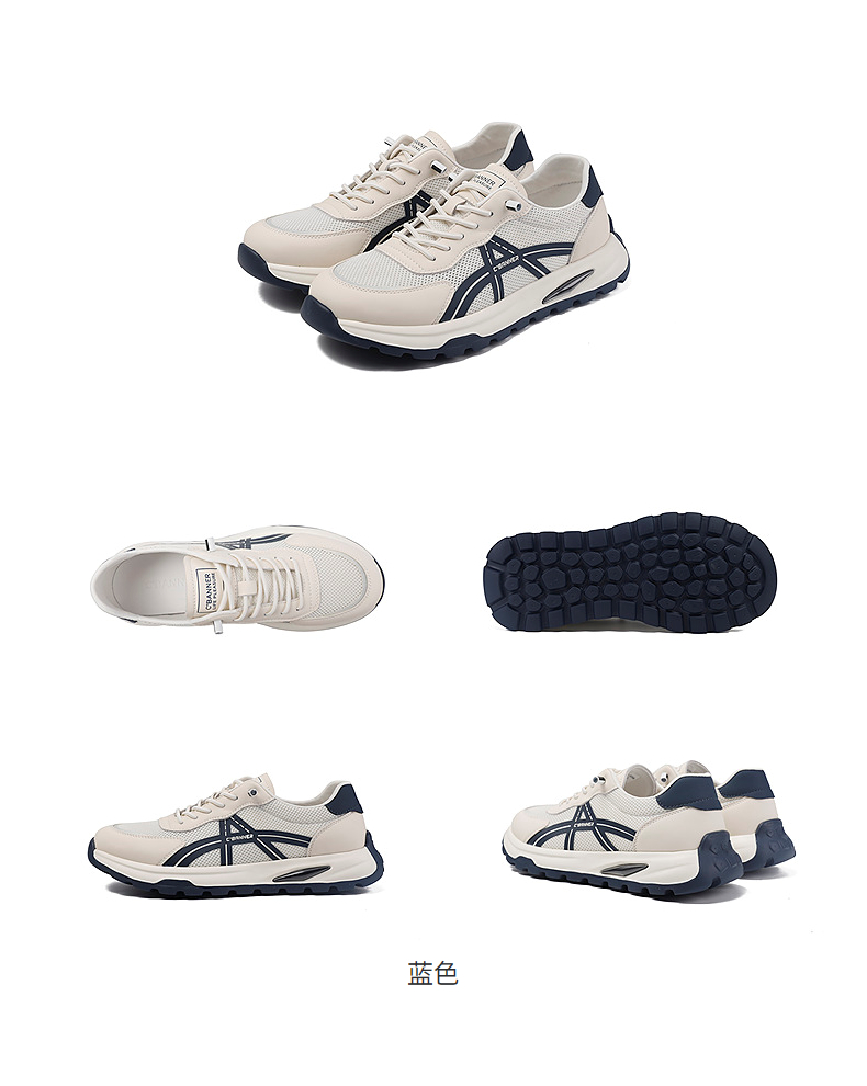 千百度夏季弹力免系鞋带透气拼接网面复古阿甘鞋A25106361