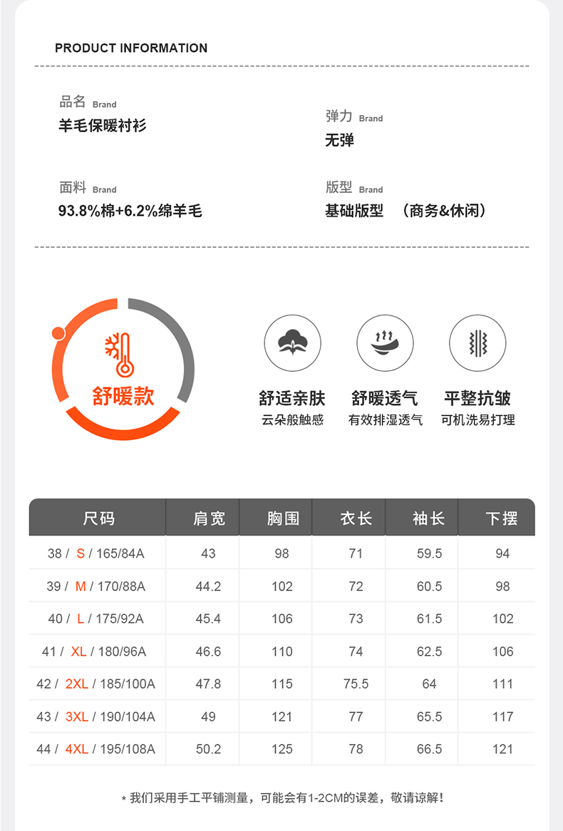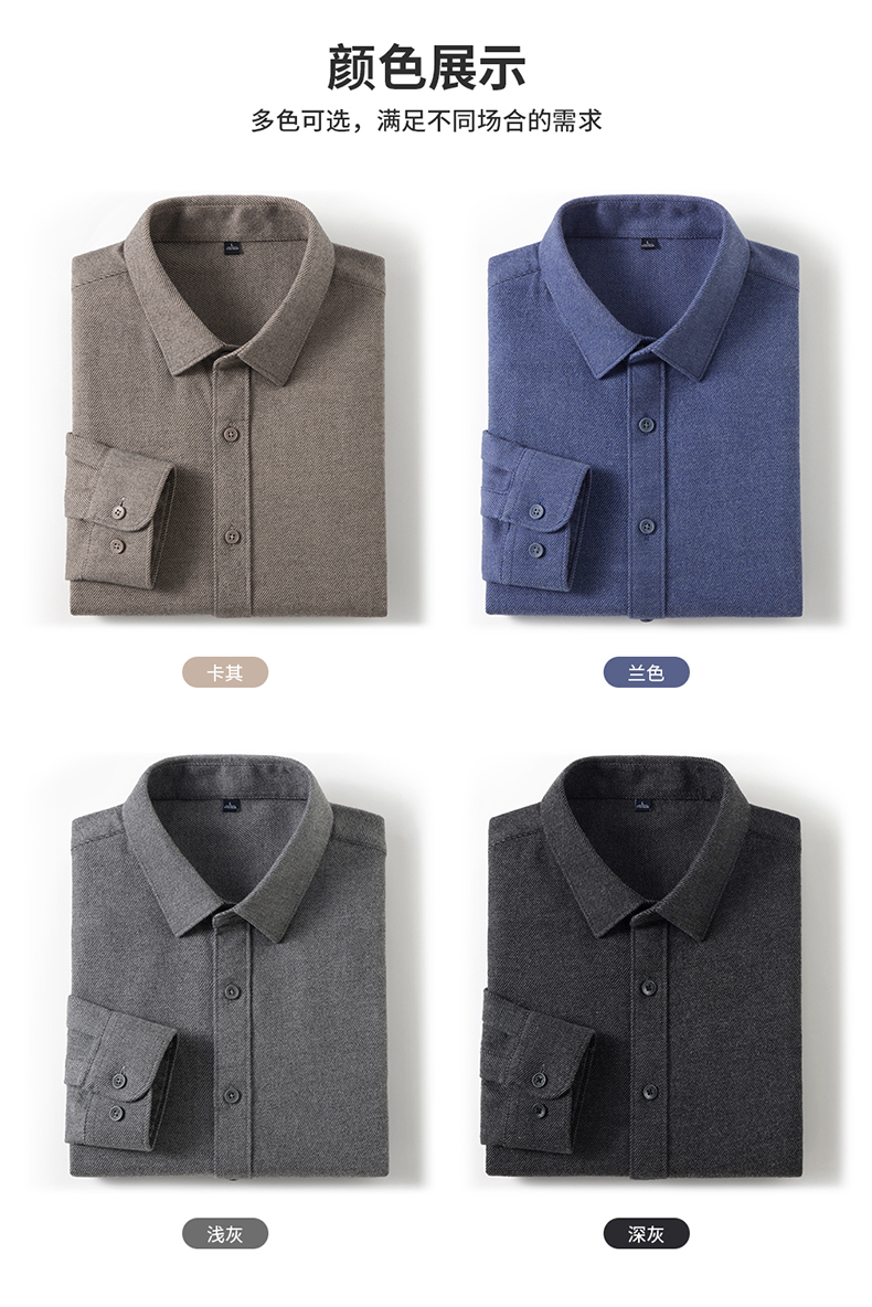 【含羊毛】罗蒙春秋男士长袖衬衫经典翻领纯色百搭舒适长袖衬衫休闲通勤上班男衬衫
