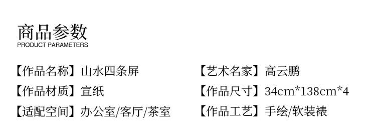 高云鹏《山水四条屏》34cm*138cm*4 山水四条屏作品 办公室/客厅/茶室挂画