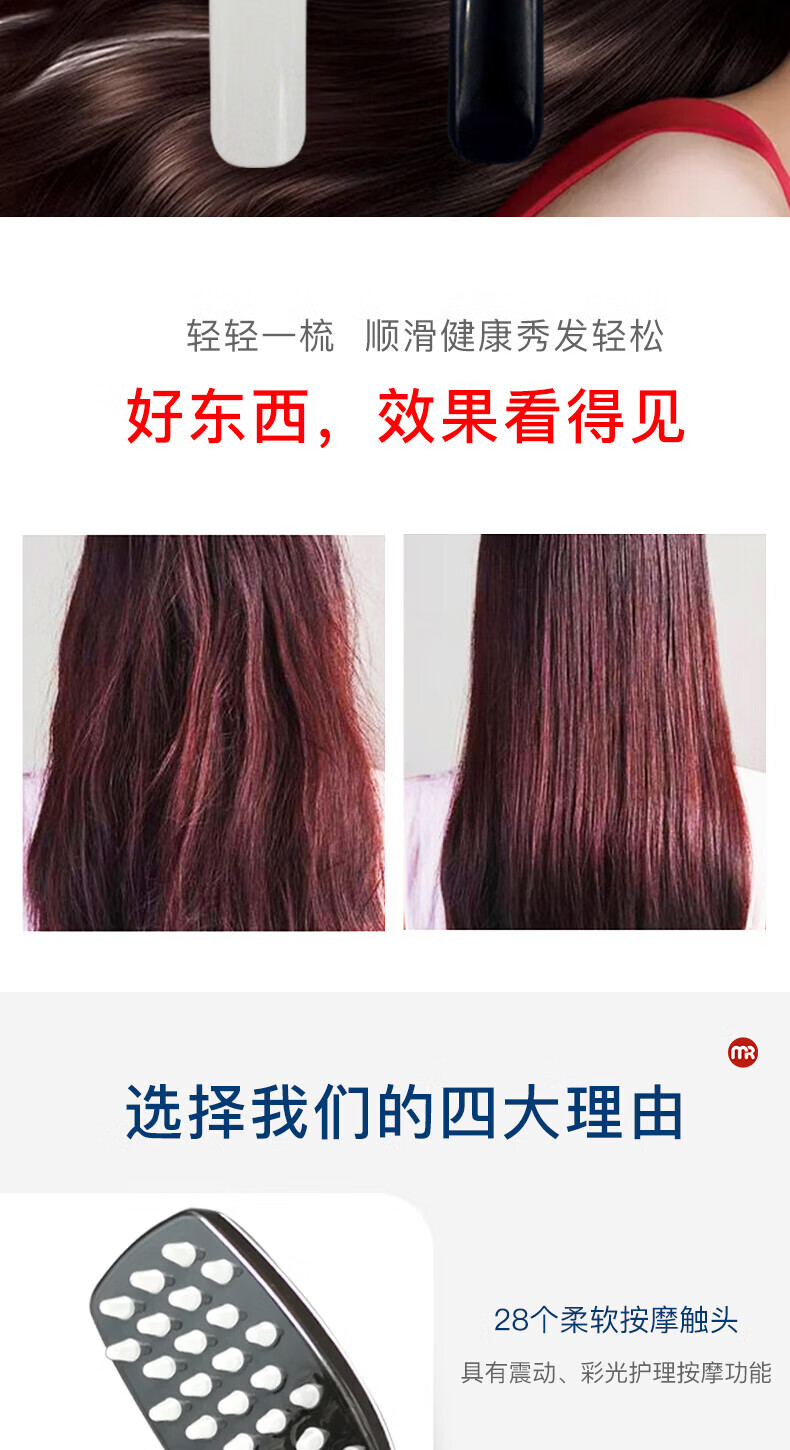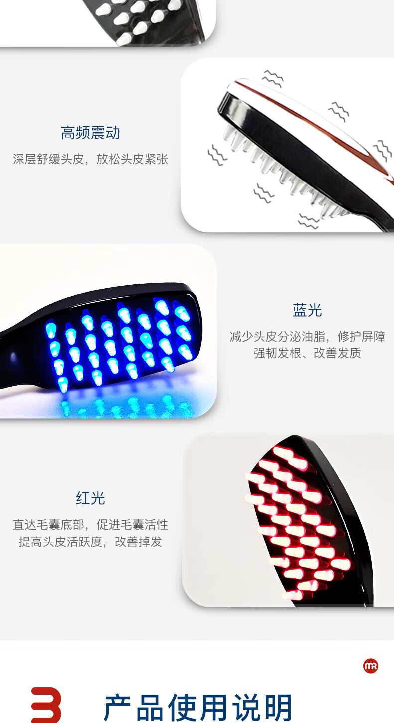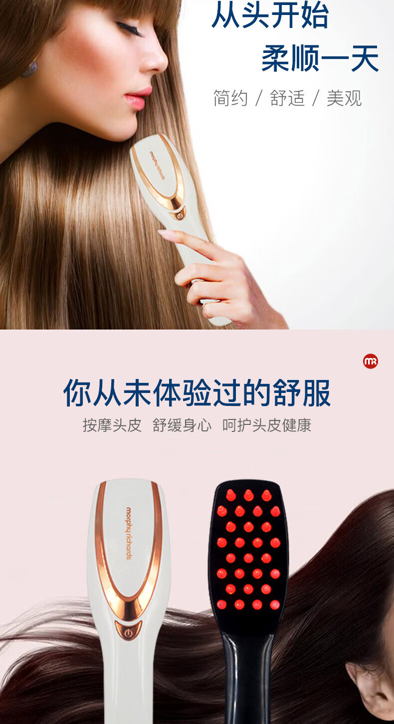 摩飞(MORPHYRICHARDS)健发按摩梳MF3108 红蓝光波震动舒缓按摩器长柄梳按摩头皮节
