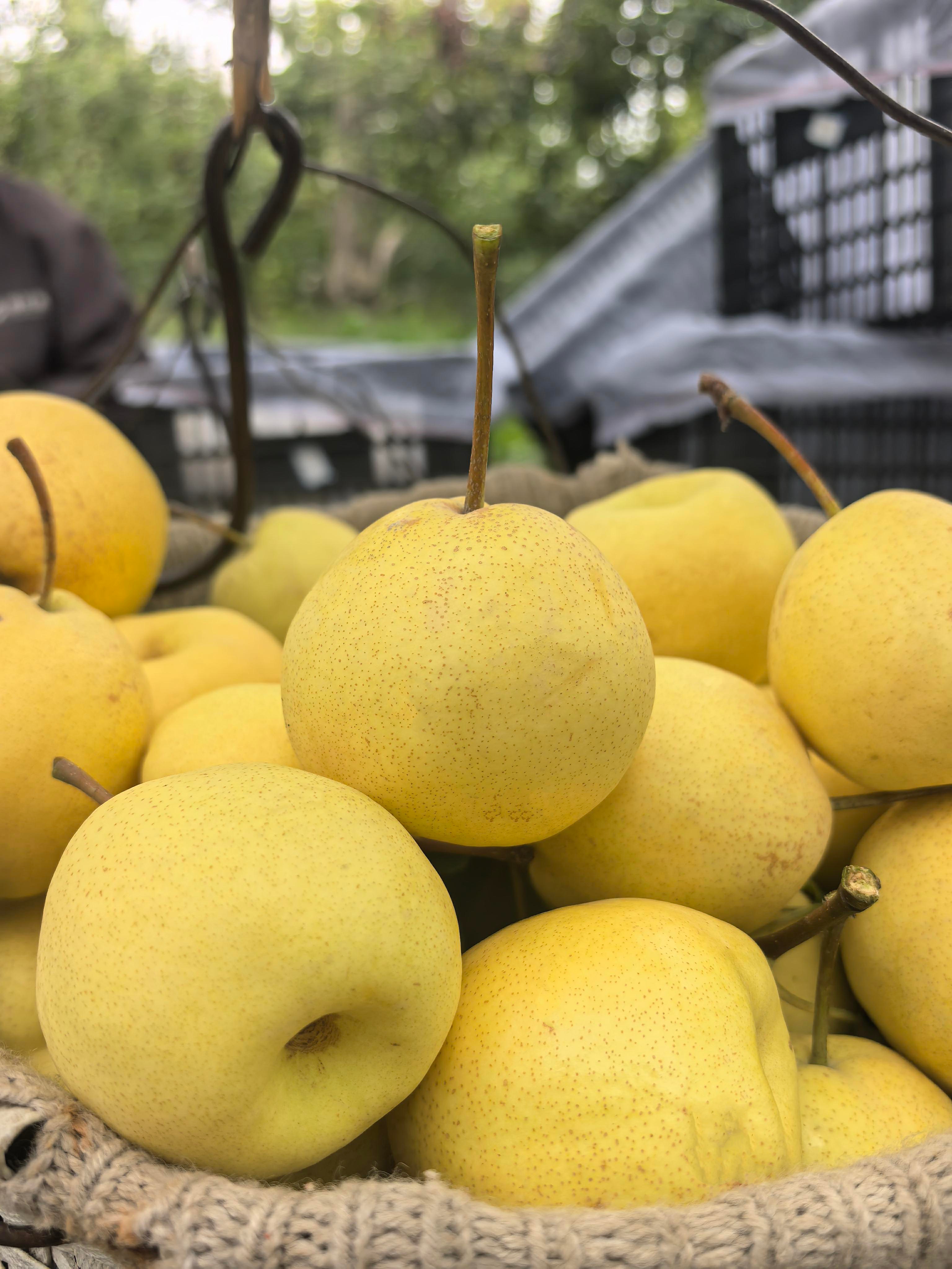 天山雪梨种植过程种,采用不套袋的培育方式,虽然在外观品相上稍有不足,但保留了雪梨天然的内在品质。自然挂果、自然成熟,比其它同类梨品上市都要晚,具有肉质酥脆、水灵饱满、清甜可口、营养丰富的产品特点.