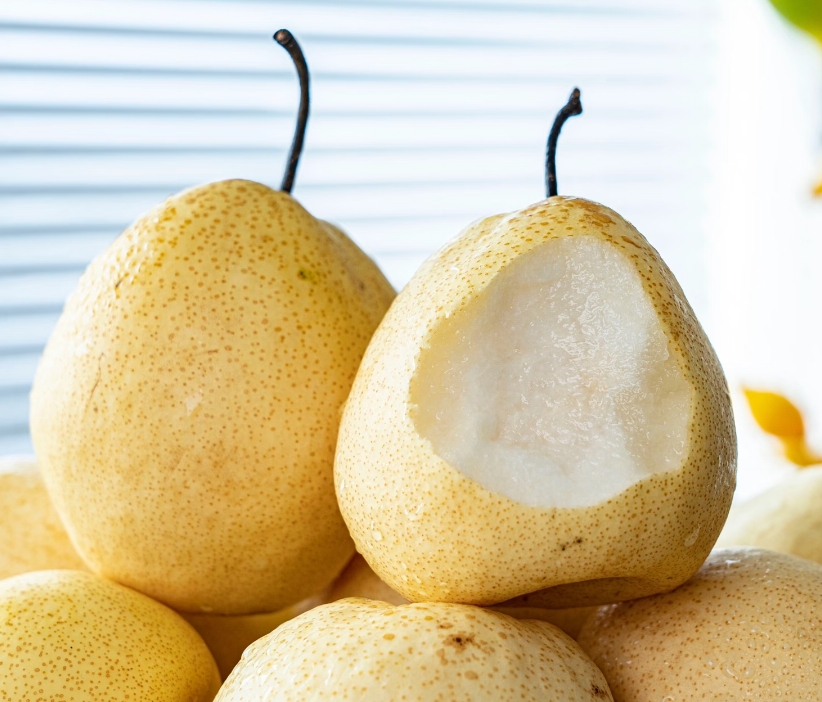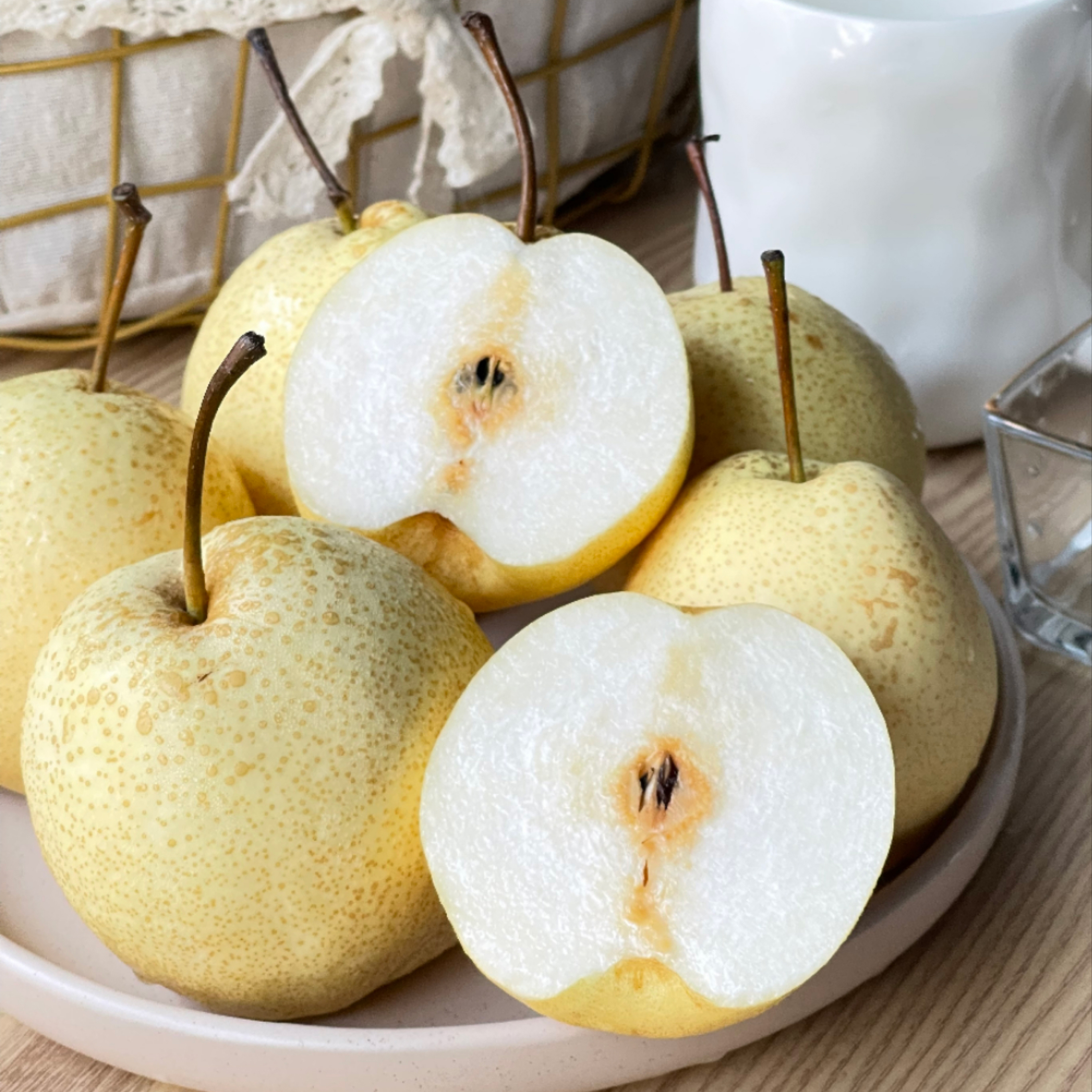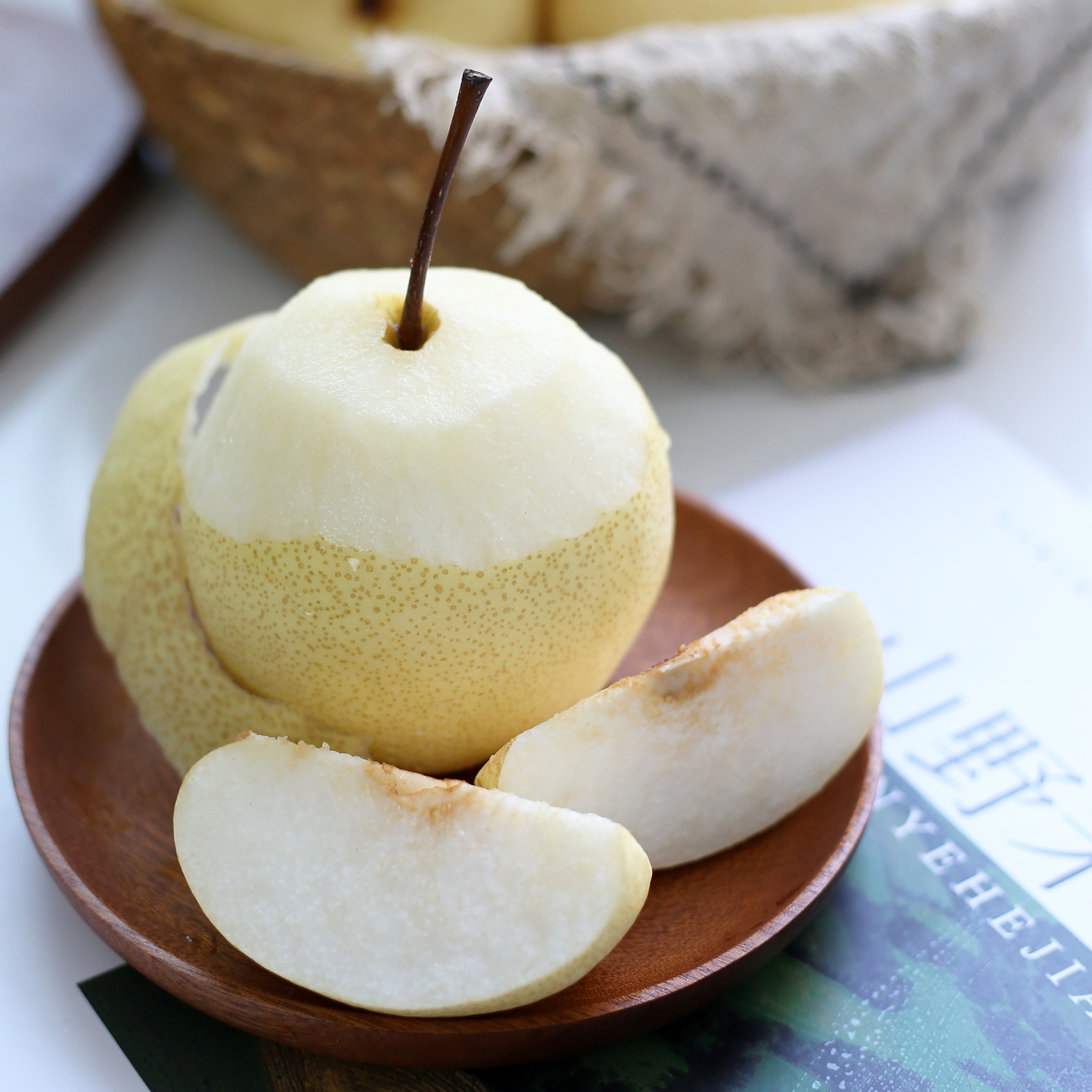 它脆皮嫩肉,香甜多汁,咬一口下去,果汁四溢,果肉细嫩如雪,脆甜多汁,入口如冰糖般清甜。它的果核特别小,水分足,口感酥脆无渣。这种梨子在清脆爽口和甘甜蜜汁中维持了恰到好处的平衡,每一口都是视觉和味觉的双重享受。
