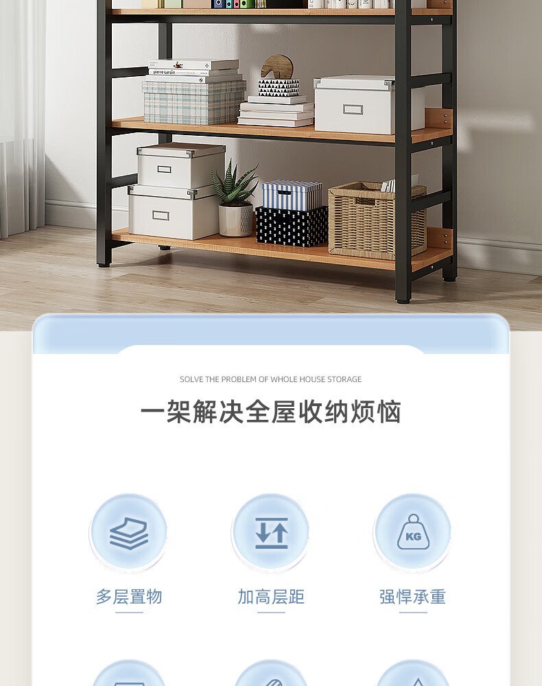 密林书架置物架落地多层收纳架客厅书柜家用货架放书简易储物架5层100 100049684260
