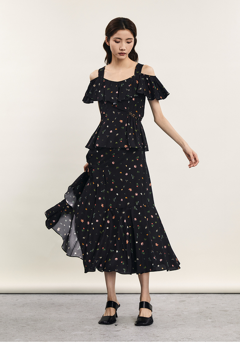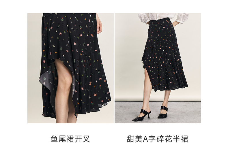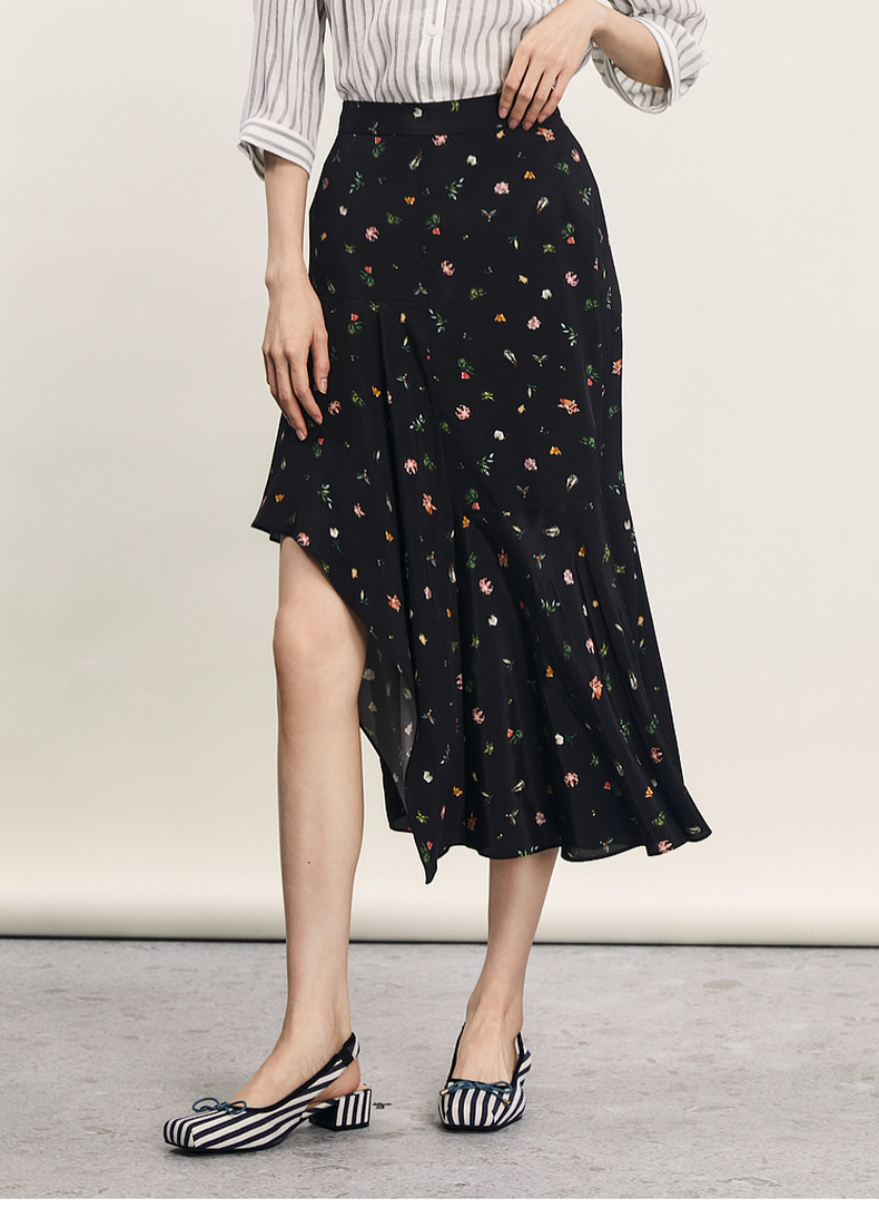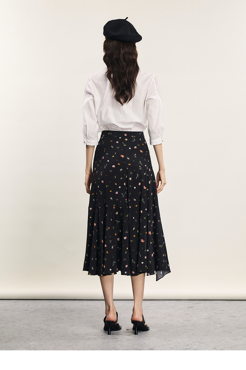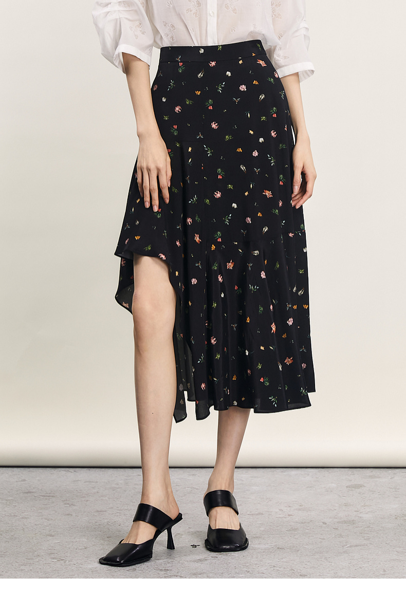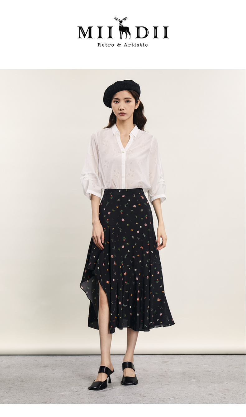 谜底花色半身裙2024夏款复古文艺亲肤不规则中长款半裙242MB0718