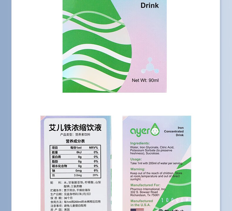 【自营】ayer艾儿钙 美国进口浓缩饮液 实惠大瓶装90ml/盒 K000200529001