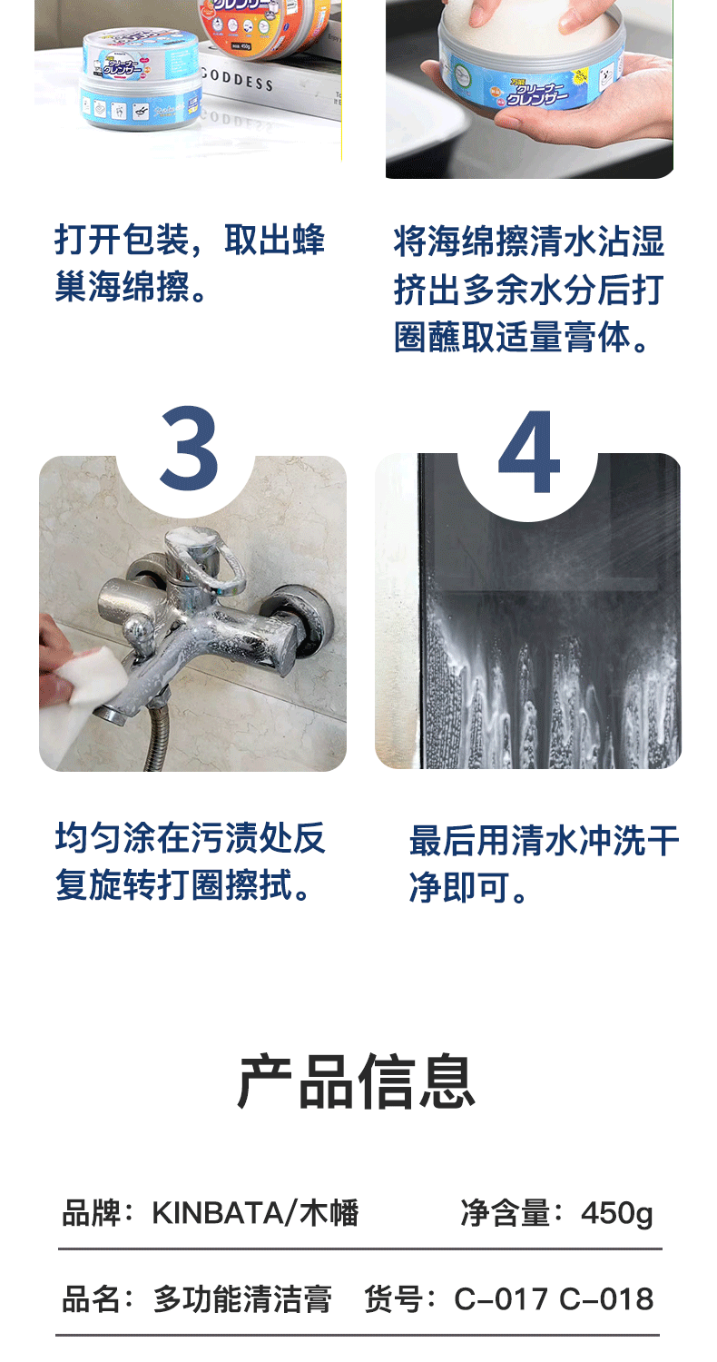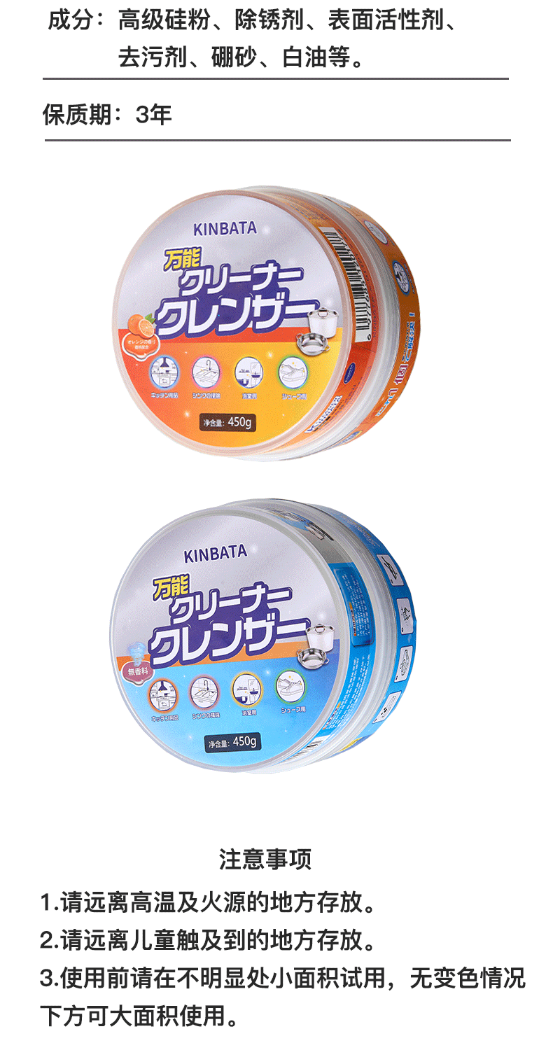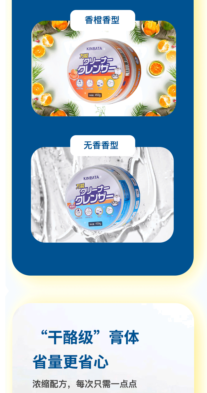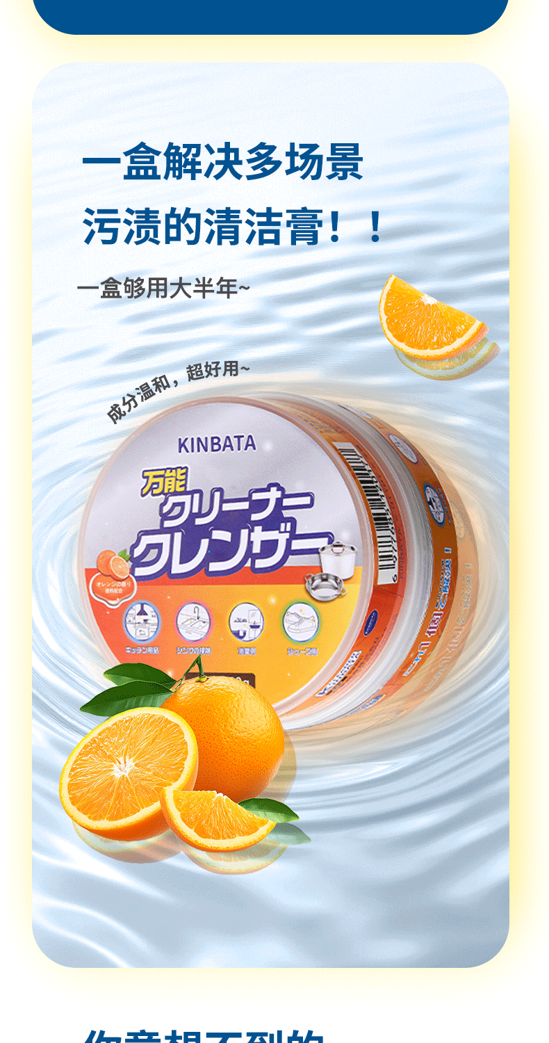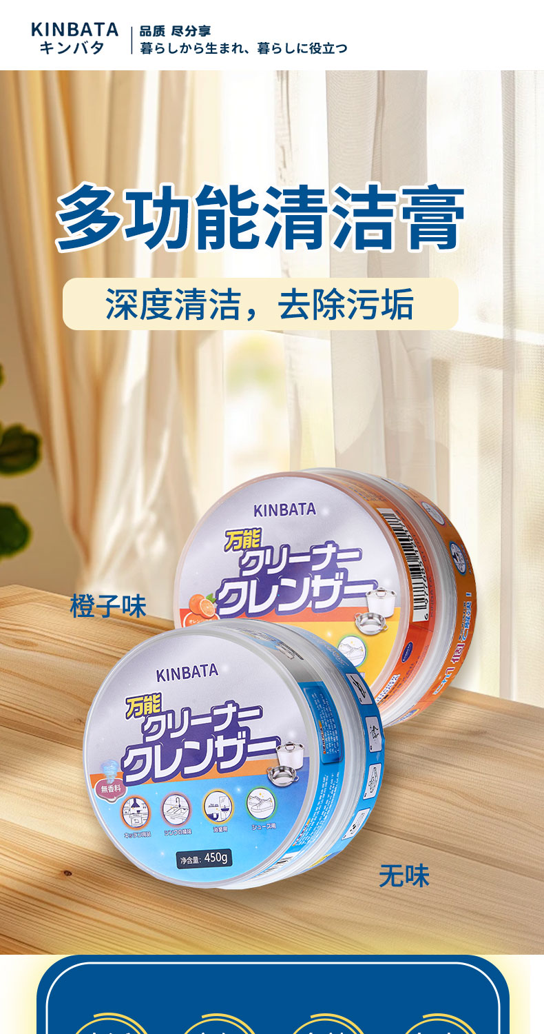 kinbata多功能清洁膏香橙味450g/盒