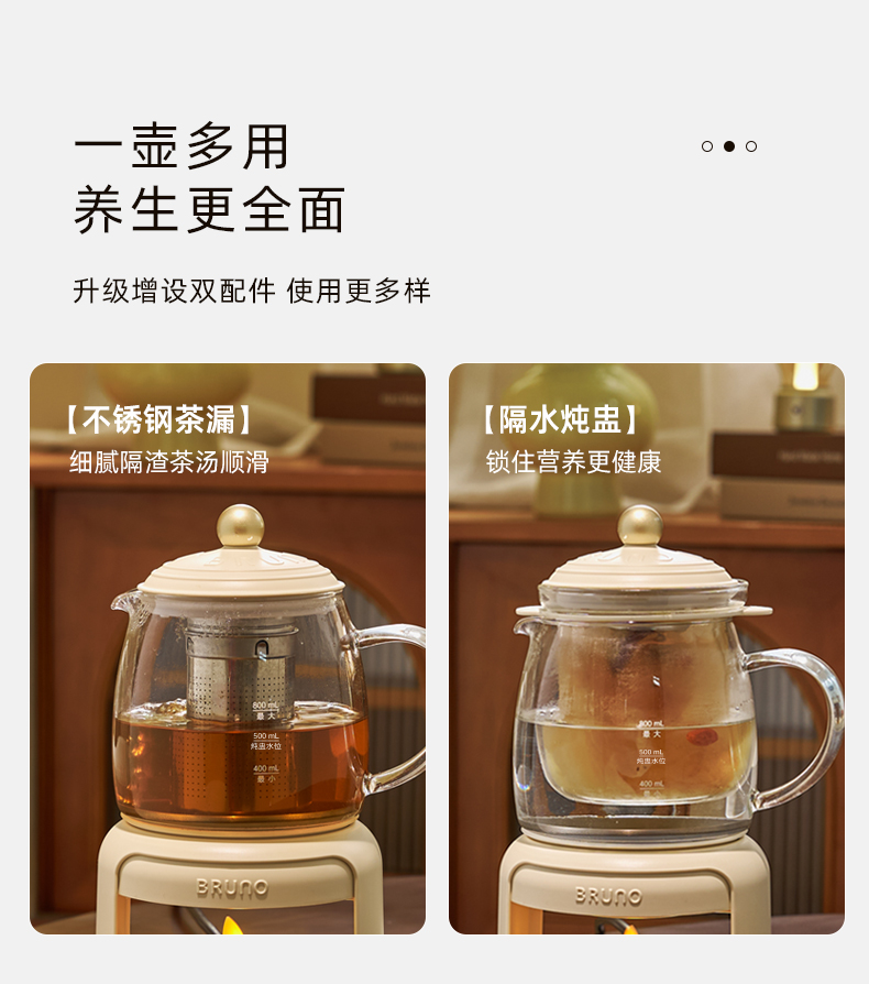 【生活好物丨bRUNO烛光养生壶800ML】升级钛发热盘,长期使用不易生锈结水垢,全盘均匀加热,烧水速度快,6大专业程序,800ml大容量,24H贴心保温,一壶多用,通勤养生更全面