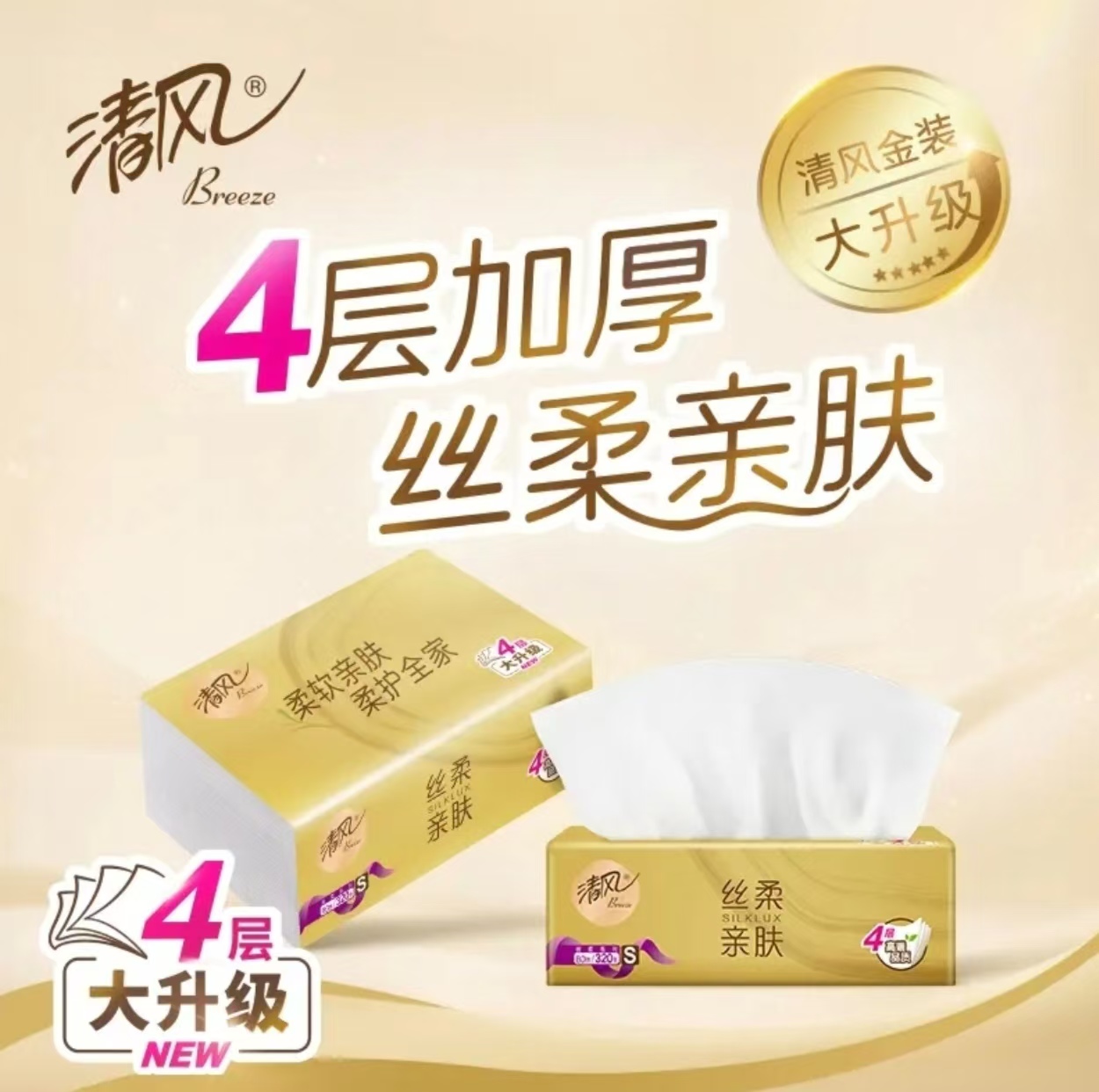 清风抽纸 金装/四层软抽/80抽/12包/提