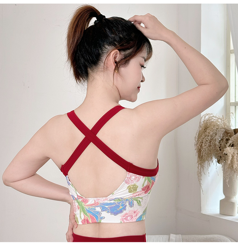 壁虎瑜伽【2601TZ490】花开富贵聚拢美背套装【5天发货】(可拆卸胸垫)