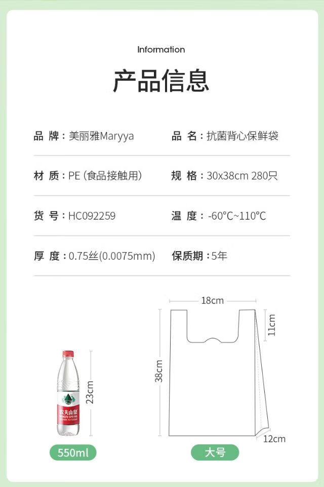 美丽雅抗菌连卷背心式保鲜袋30*38厘米*280只