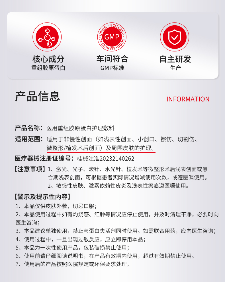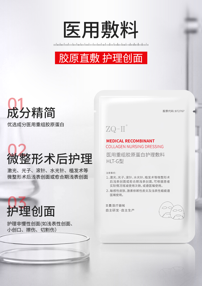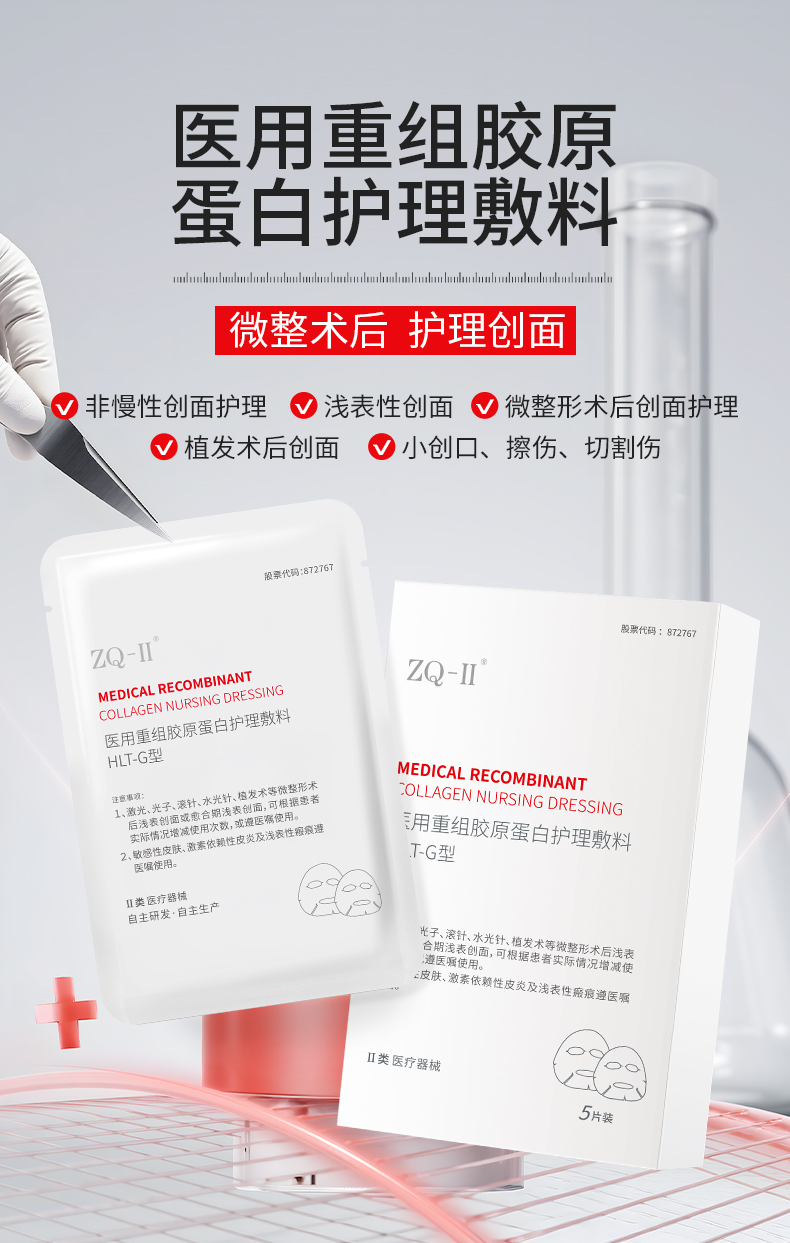 ZQ-II再启 医用重组胶原蛋白护理敷料 5片/盒 术后护理 胶原直补