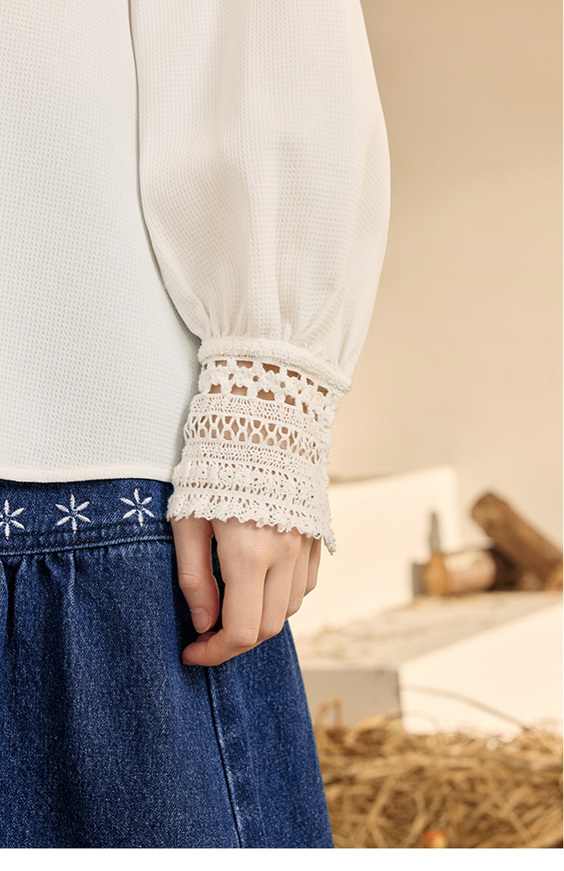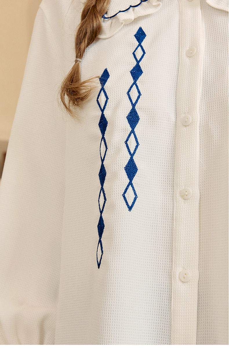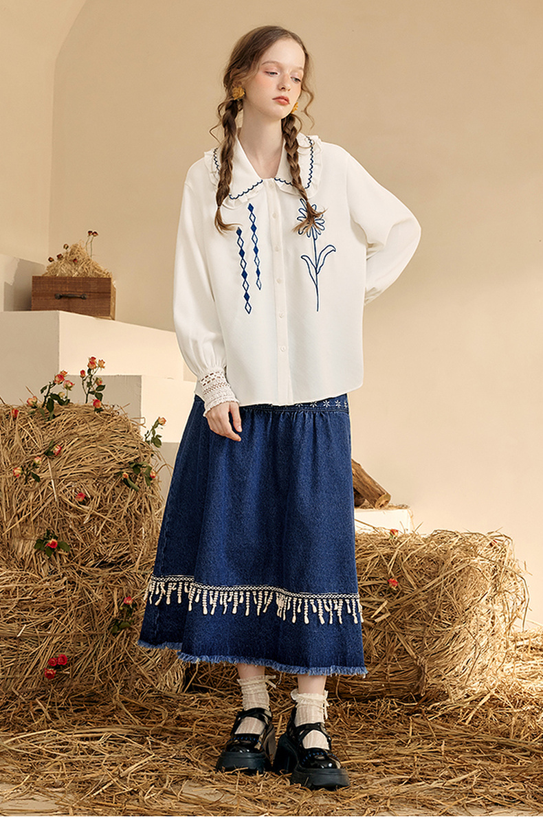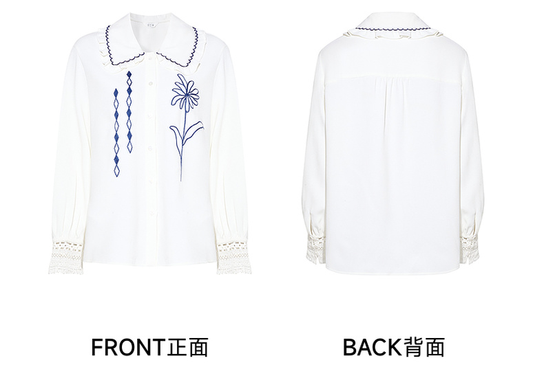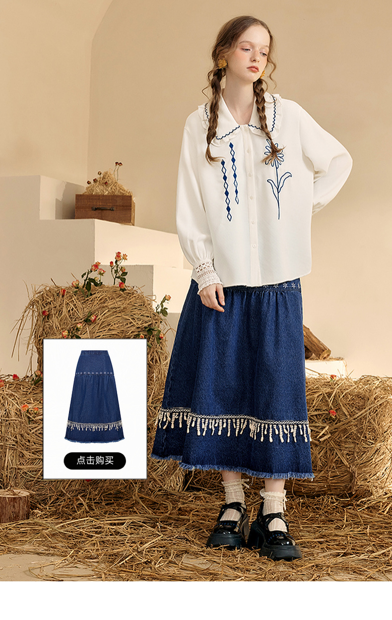 两三事舞动花魅2024秋季新款文艺风荷叶边翻领绣花长袖衬衫女宽松
