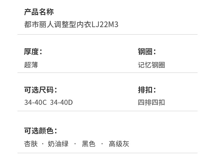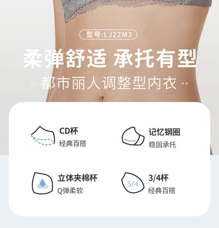 都市丽人舒软挺塑轻塑CD杯调整型文胸蕾丝超薄3/4杯塑身文胸四排扣记忆钢圈LJ22M3