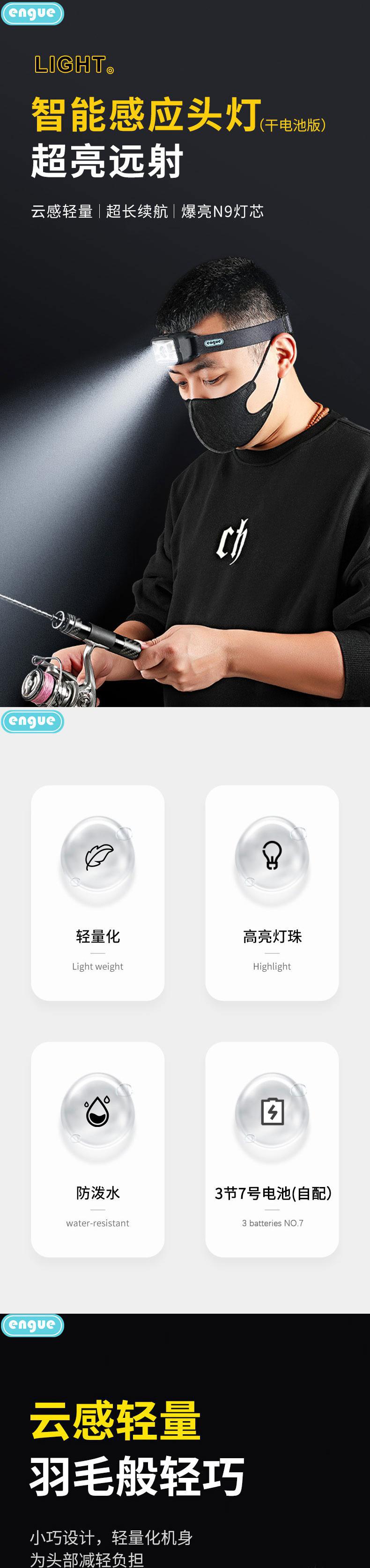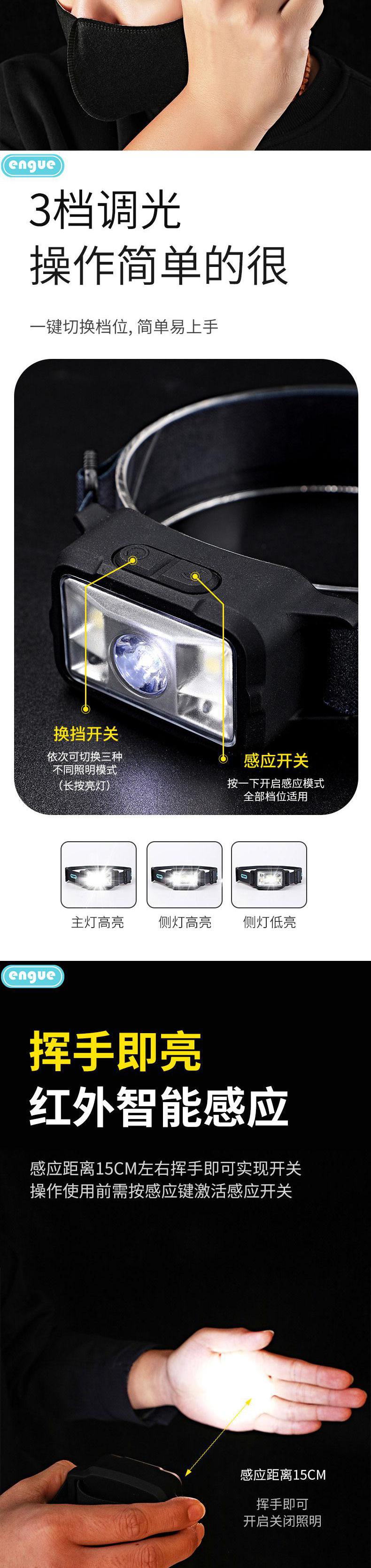 engue恩谷硅胶感应头灯(干电池款)EG-810A方便换电老人家用应急备用