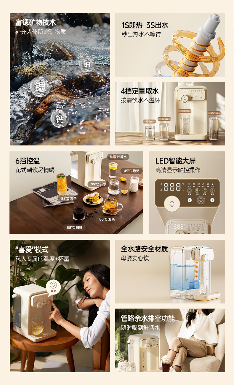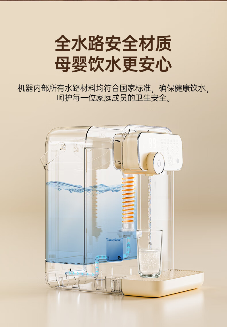JMEY即热式饮水机 新款家用直饮机 小型桌面台式净饮热水机 饮水器 高配款-米色 矿物质滤芯款