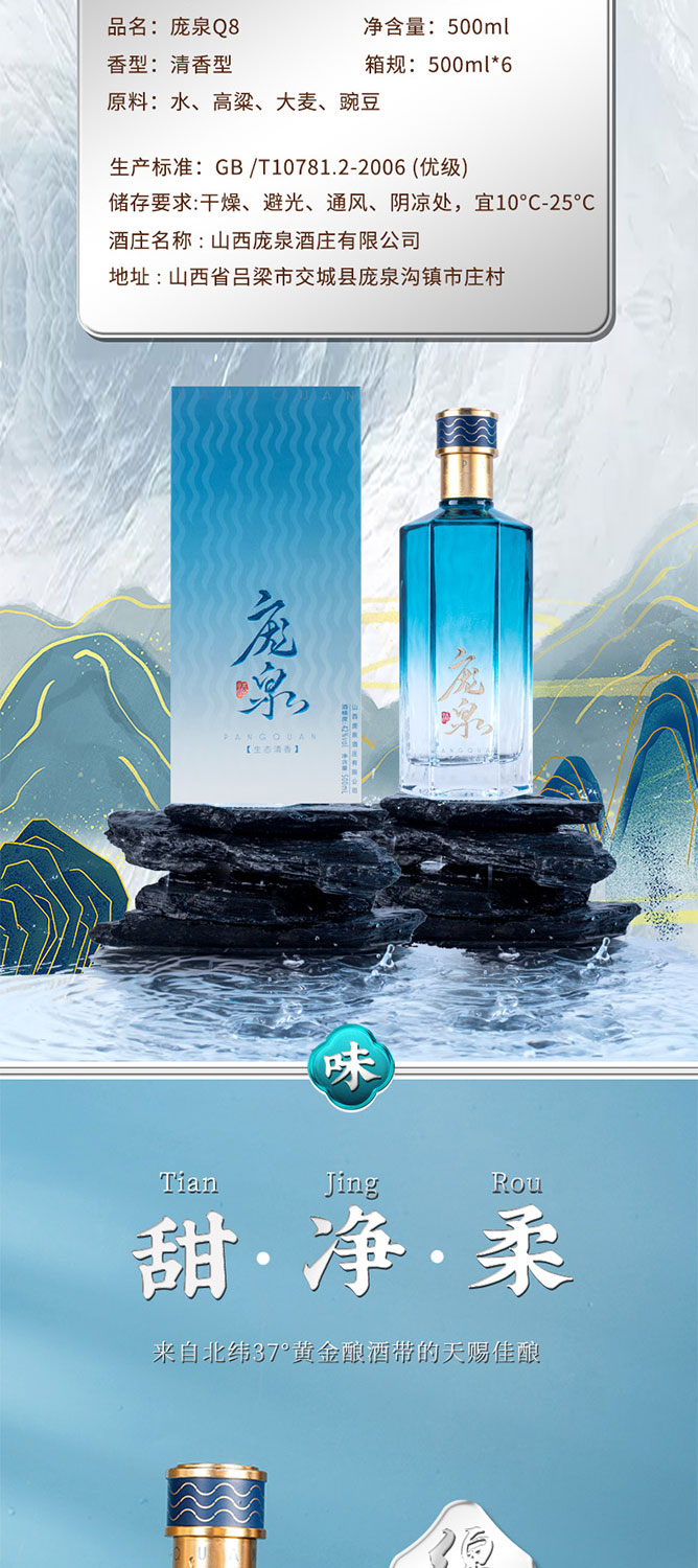 庞泉Q8清香型白酒42度500ml*6纯粮食酒高粱酒口粮酒山西老酒白酒礼盒