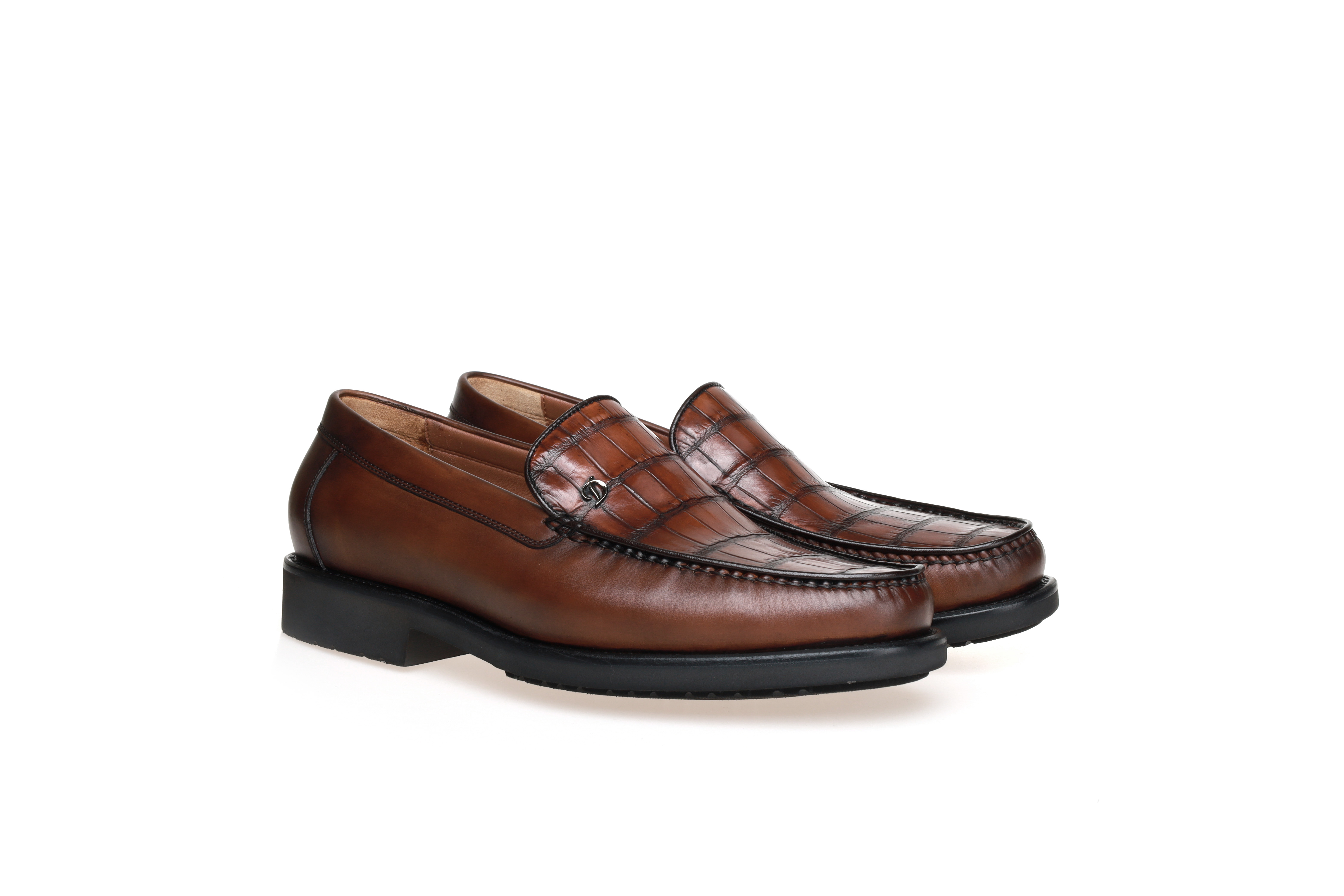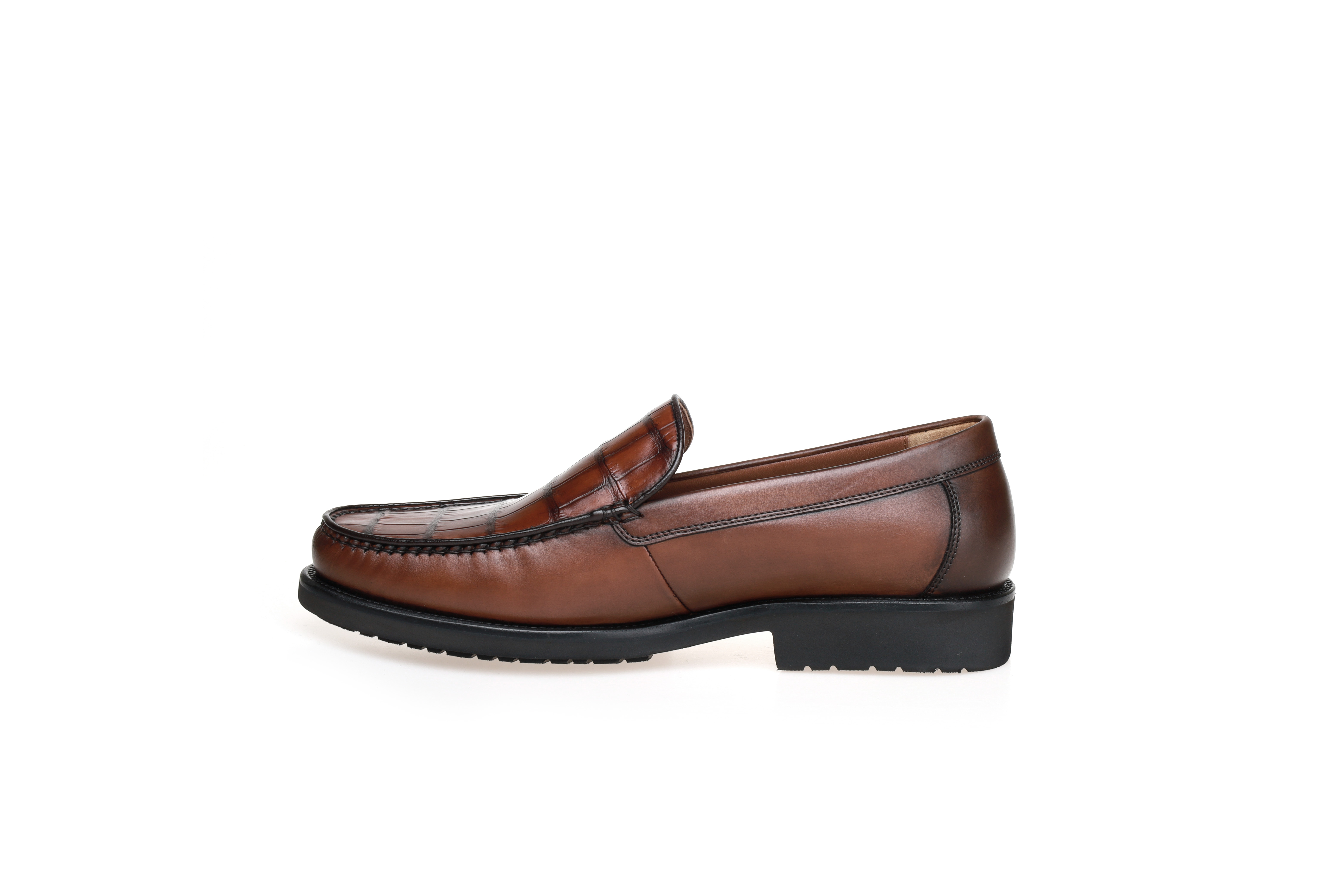 豪麟名鞋都彭牛皮革+鳄鱼皮革男鞋商务鞋E33221123咖啡色