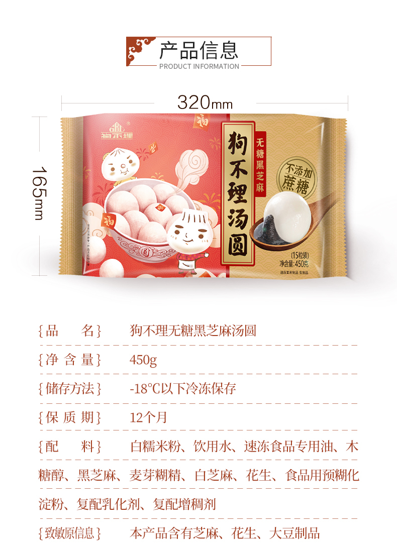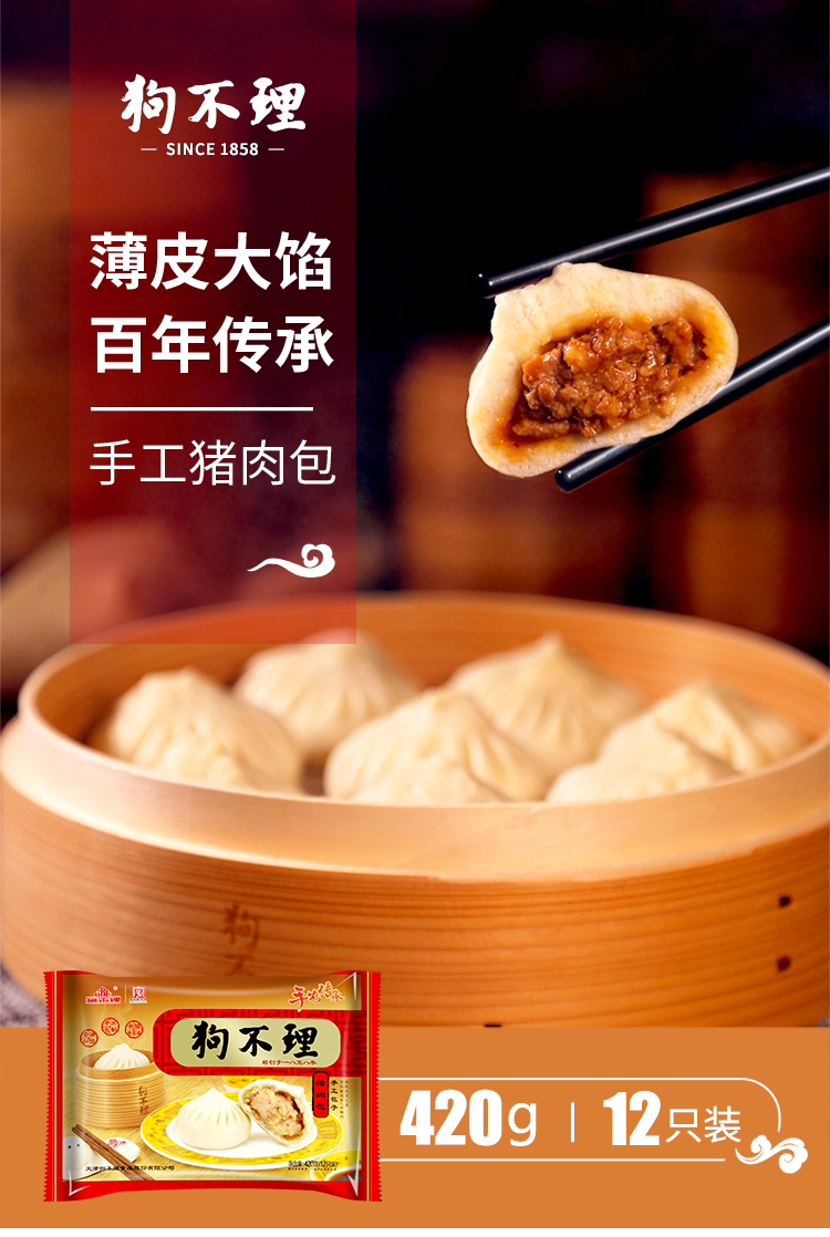 天津正宗狗不理手工猪肉包420g*9袋+无糖黑芝麻汤圆450g*3袋特惠组合共12袋 薄皮大馅