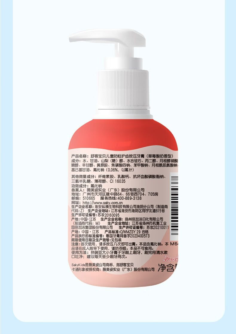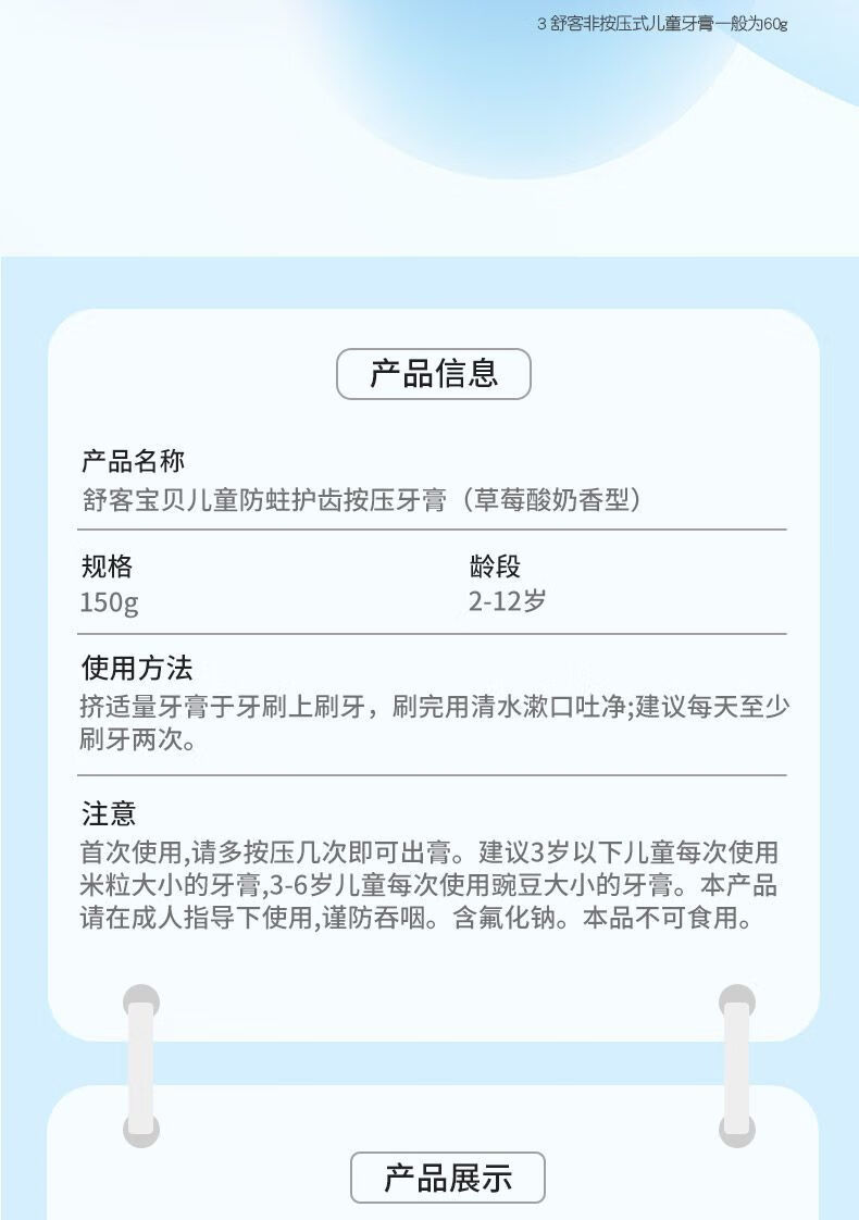 舒客宝贝儿童按压式啫喱牙膏150g(草莓酸奶香型)
