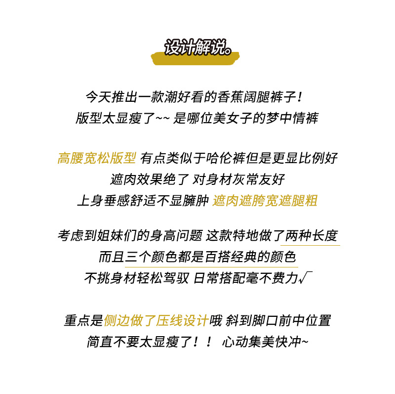 「三色可选!韩版香蕉裤」女春秋新款宽松垂感高腰抽绳显瘦韩哈伦运动休闲下装