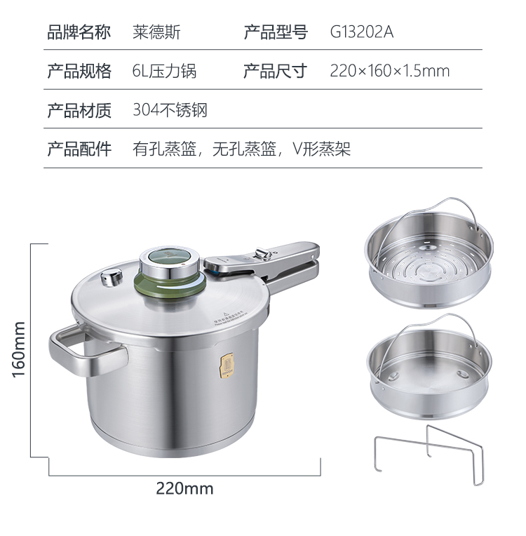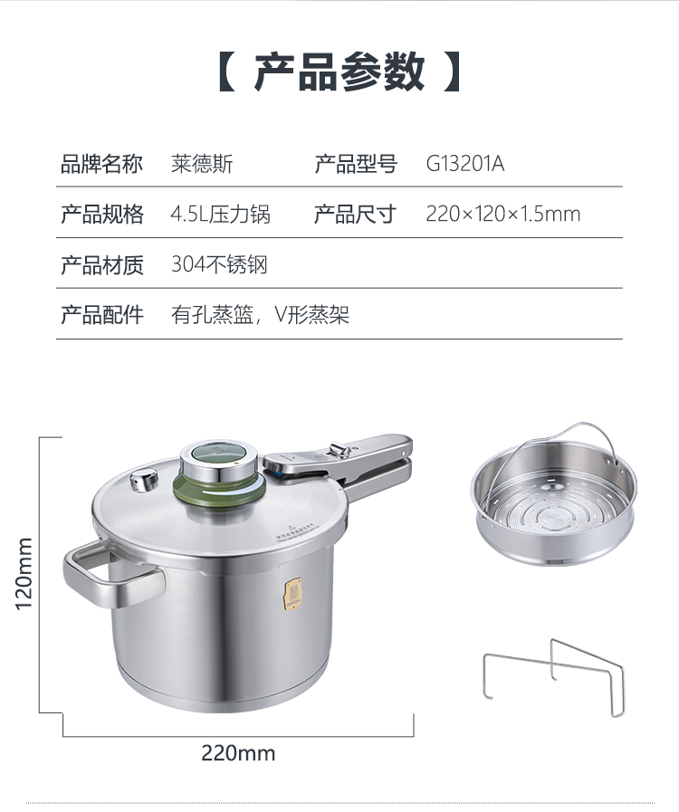 莱德斯压力锅 焕新系列不锈钢高压锅锅具4.5L/6L 商品缩略图0 莱德斯压力锅 焕新系列不锈钢高压锅锅具4.5L/6L 商品缩略图1