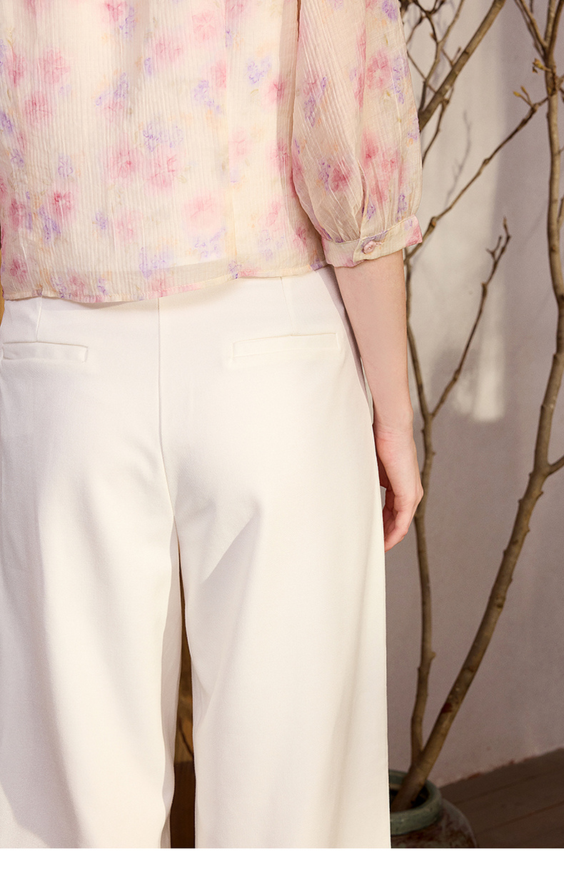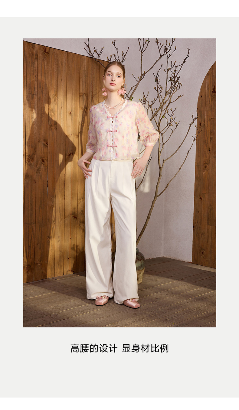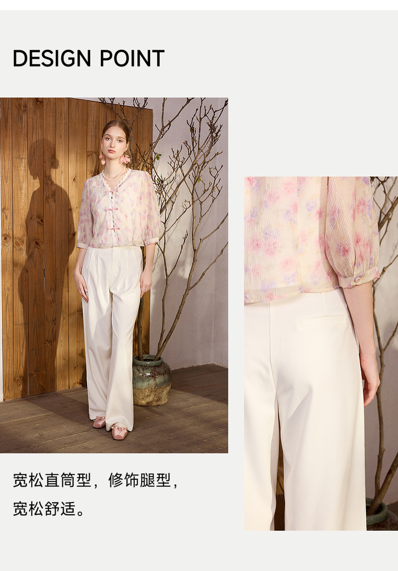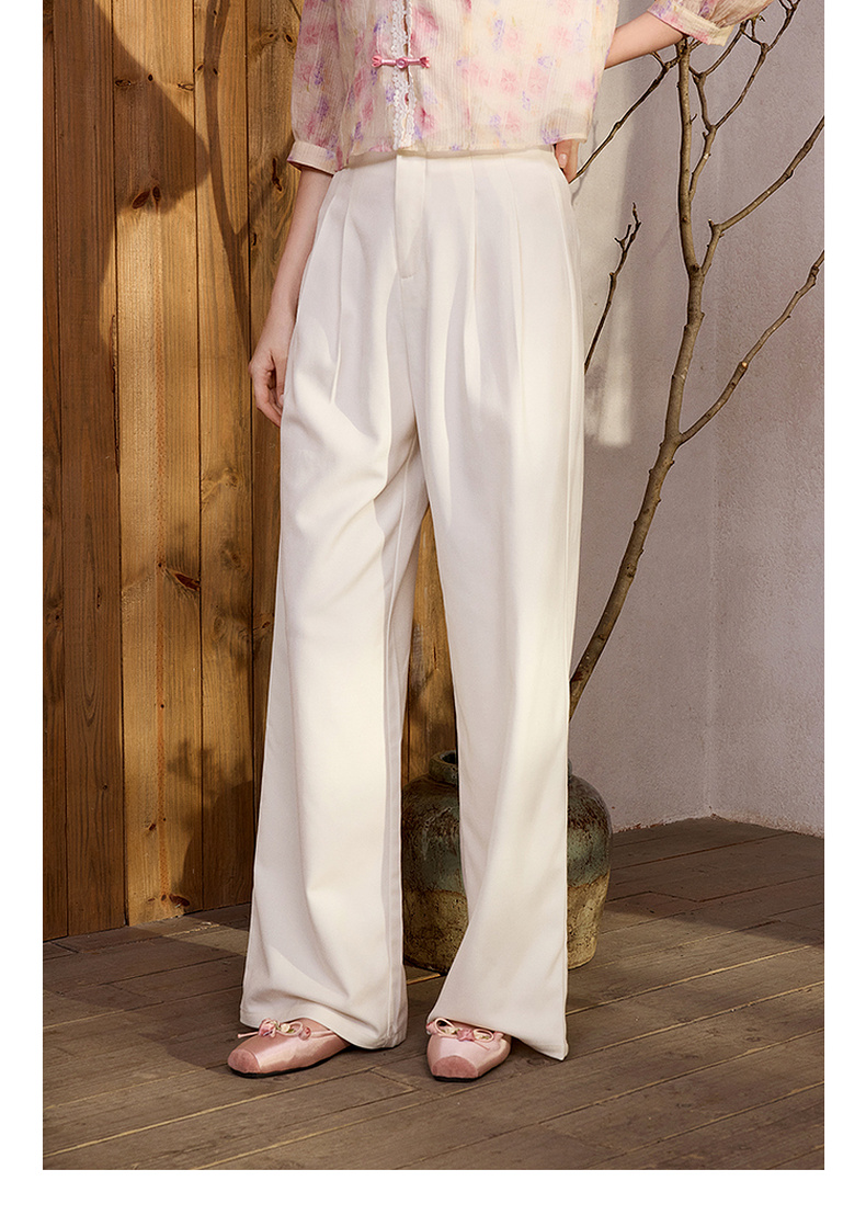 两三事皎月先行2024夏季新款简约米白色西装裤女宽松休闲裤