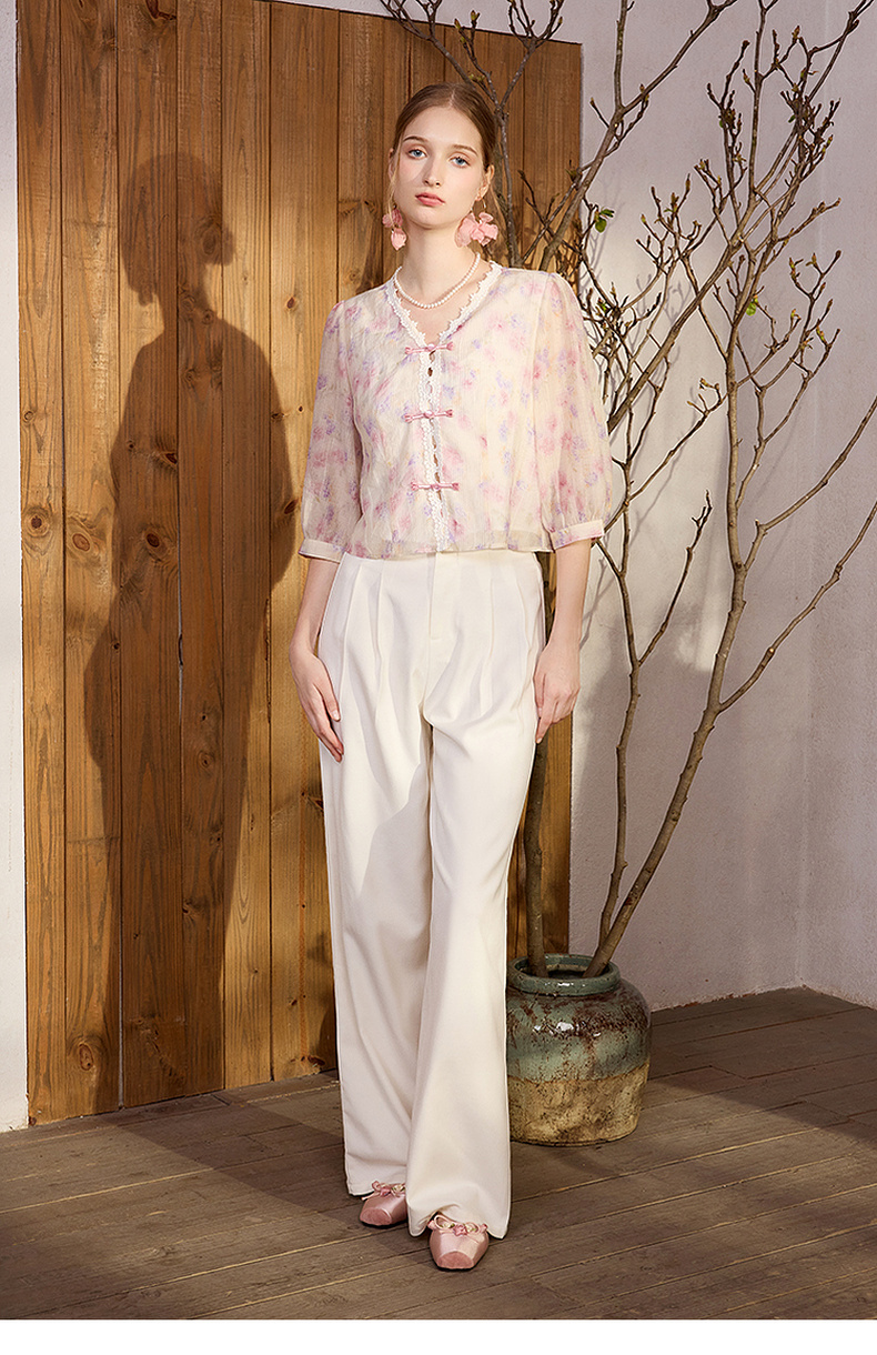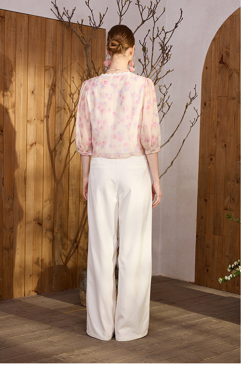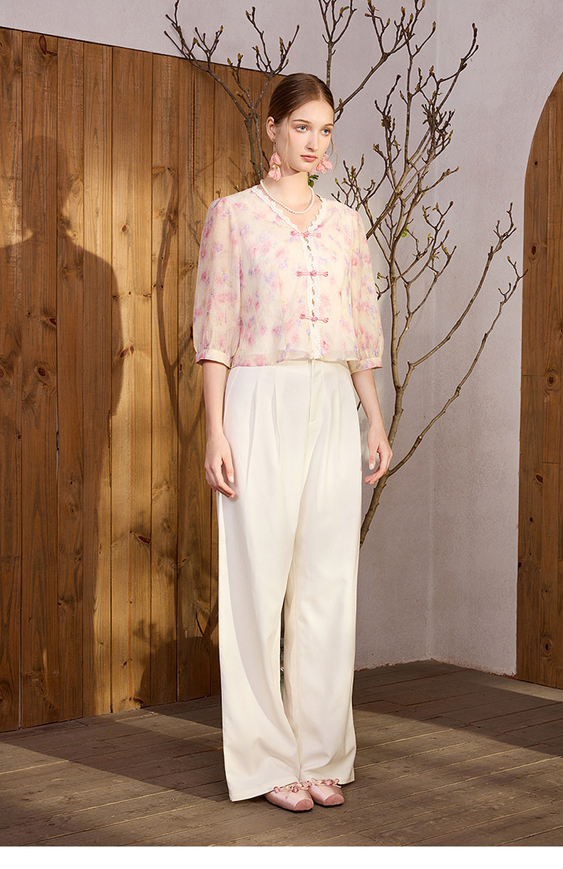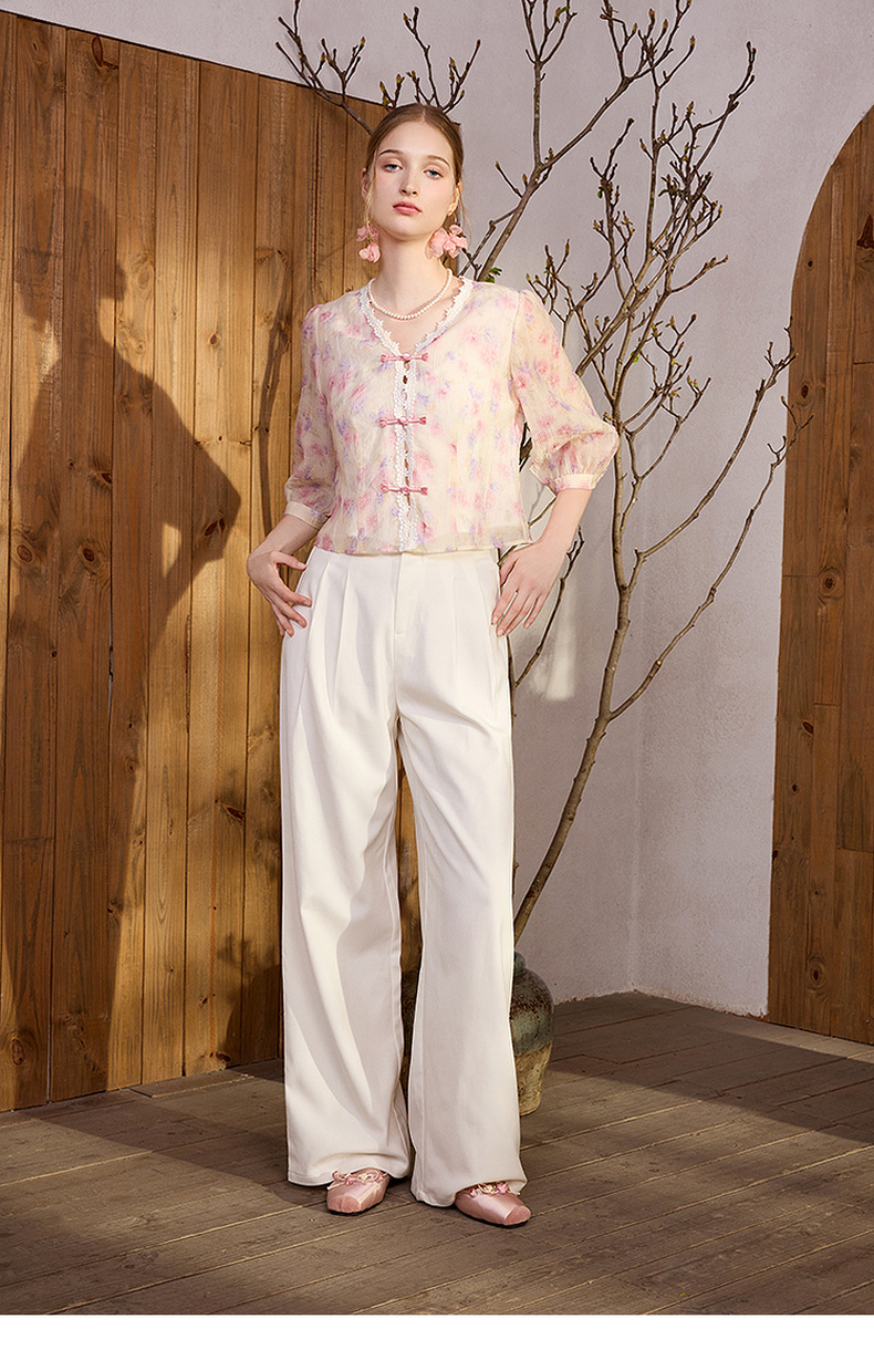 两三事皎月先行2024夏季新款简约米白色西装裤女宽松休闲裤