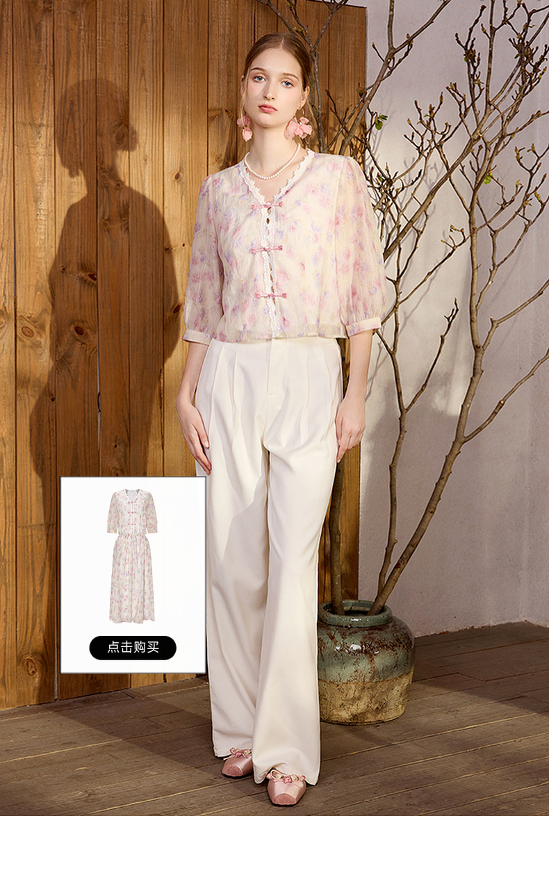两三事 森灵绮梦 2025夏季新款小清新印花拼色绑带吊带裙连衣裙