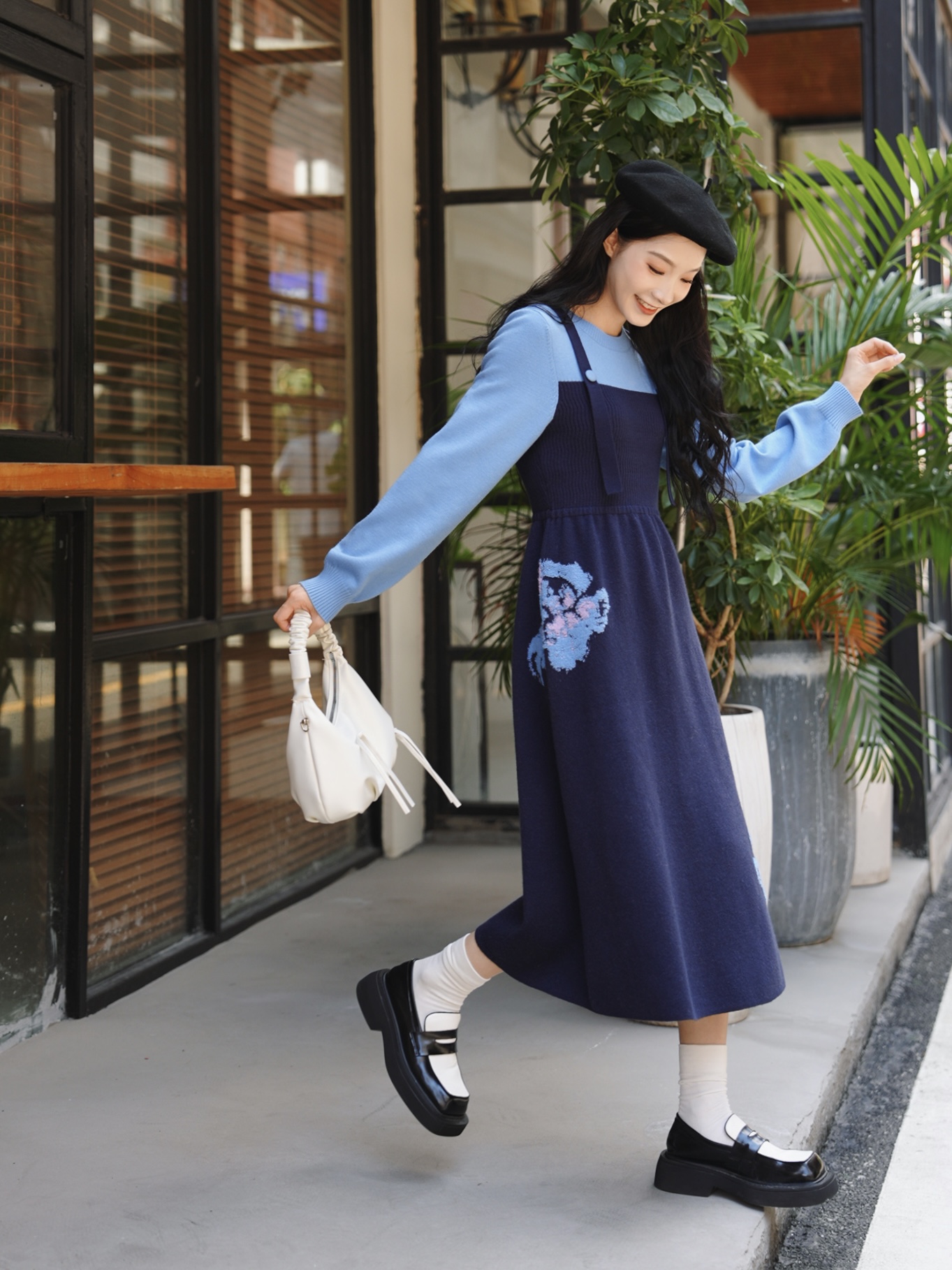两三事默染时分新款时尚洋气百搭女装秋季针织连衣裙